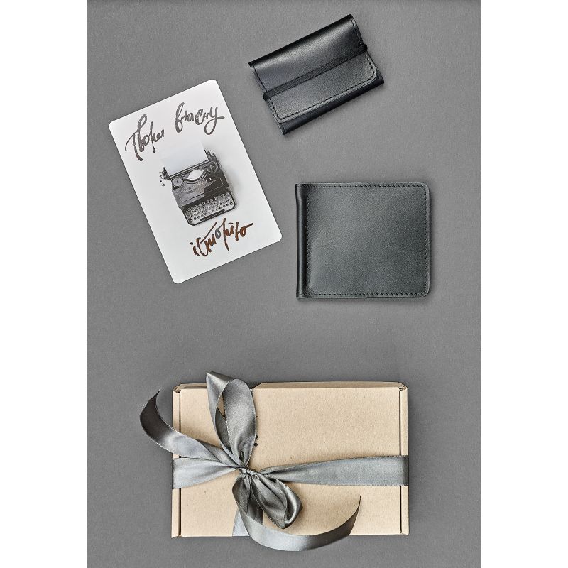 Как часто при выборе подарка мы мечемся из магазина в магазин, перерываем тонны информации на сайтах в поисках достойного подарка для друга, коллеги или члена семьи. Чтобы сделать вашу жизнь проще, а выбор подарков не утомительным, мастерская BlankNote создала подарочные наборы из самых необходимых предметов в повседневной жизни. Мы подобрали изделия, которые дополняют друг друга по функционалу, стилю, а также цветовой гамме. В подарочный Набор аксессуаров "Сан-Франциско" входит: Портмоне 1.0 Графит. С одной стороны, это банальный зажим для денег, а с другой - он супер-удобный, потому что в нем есть множество очень удобных кармашков для пластиковых карточек и для небольших записок-бумажек! Кард-кейс 1.1 Графит. Невероятно компактный и удобный кейс позволяет хранить одновременно до 15-20 стандартных пластиковых карт. Подходит так же и для визиток. Открытка с важными словами, которые мотивируют! Подарочный набор аксессуаров также доступен в цвете орех и ночное небо – Набор аксессуаров "Лас-Вегас"  и Набор аксессуаров "Токио". Фурнитура и комплектация может быть изменена производителем