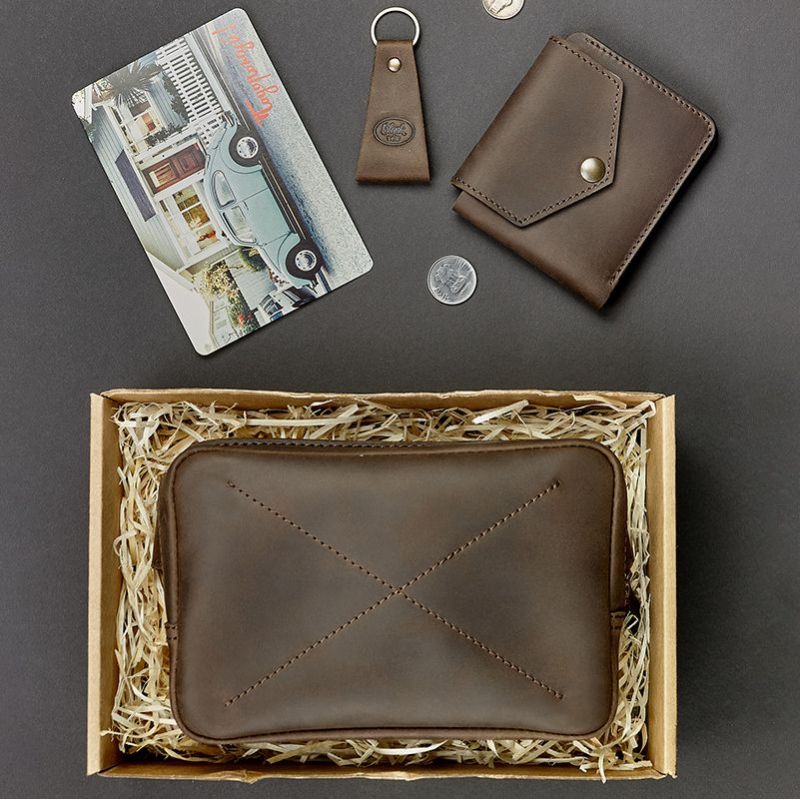 Как часто при выборе подарка мы мечемся из магазина в магазин, перерываем тонны информации на сайтах в поисках достойного подарка для друга, коллеги или члена семьи. Чтобы сделать вашу жизнь проще, а выбор подарков не утомительным, мастерская BlankNote создала подарочные наборы из самых необходимых предметов в повседневной жизни. Мы подобрали изделия, которые дополняют друг друга по функционалу, стилю, а также цветовой гамме.  В набор аксессуаров "Орландо" входит: Сумка "DropBag", Орех - удобство, практичность и функциональность, уместны к любому образу; Портмоне 4.2, Орех - стильное и компактное портмоне с небольшим отделением для монет; Брелок. Верный спутник для ваших ключей; Дизайнерская открытка - для важных слов.  Подарочный набор упакован в крафтовую коробку и заботливо перевязан атласной лентой. Все, что вам предстоит сделать, это заказать и презентовать восхитительный подарок - набор аксессуаров "Орландо" . Меньше времени на раздумья, что подарить, больше на приятные приготовления! ВНИМАНИЕ! Выделка данной кожи предполагает естественное появление на ней царапин и потертостей в ходе использования! От этого изделие становится более индивидуальным и приятным, это оценят настоящие поклонники винтажного стиля:)  А так же первое время кожа может краситься при сильном трении об другие предметы  - это особенность её выделки, постепенно этот эффект уменьшается,  кожа полируется и приобретает чуть глянцевый эффект. Фурнитура и комплектация может быть изменена производителем