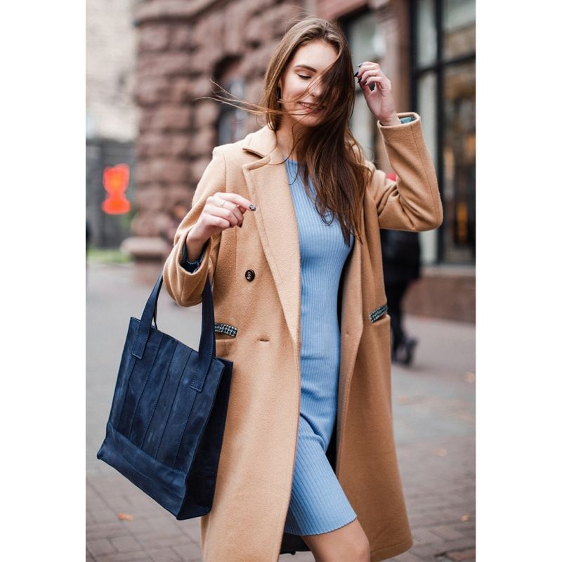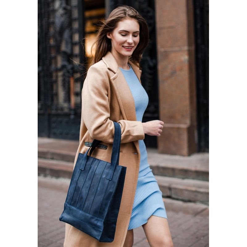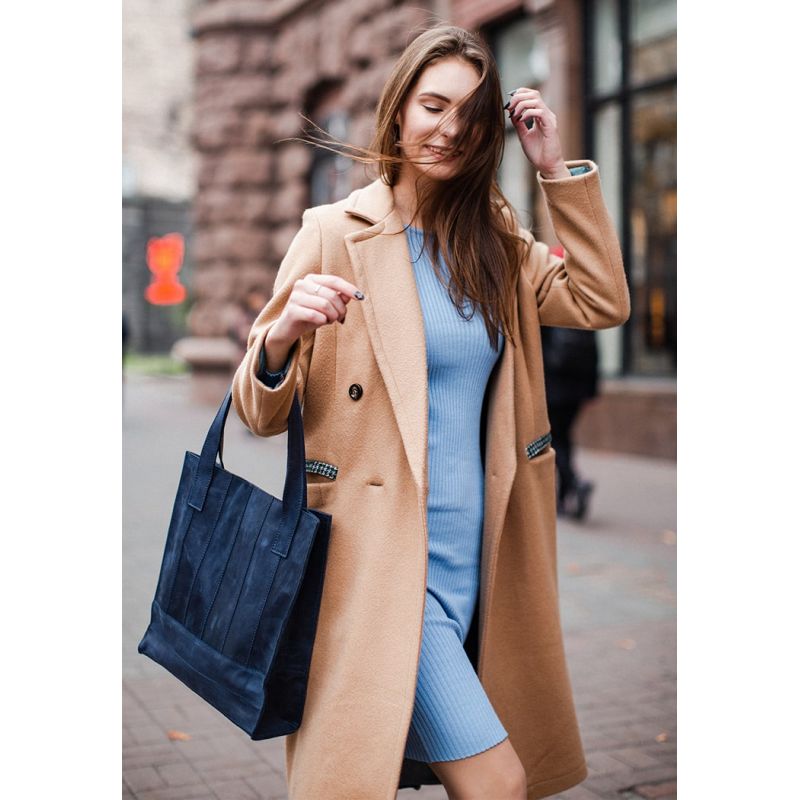 Кожаная женская сумка шоппер Бэтси синяя
