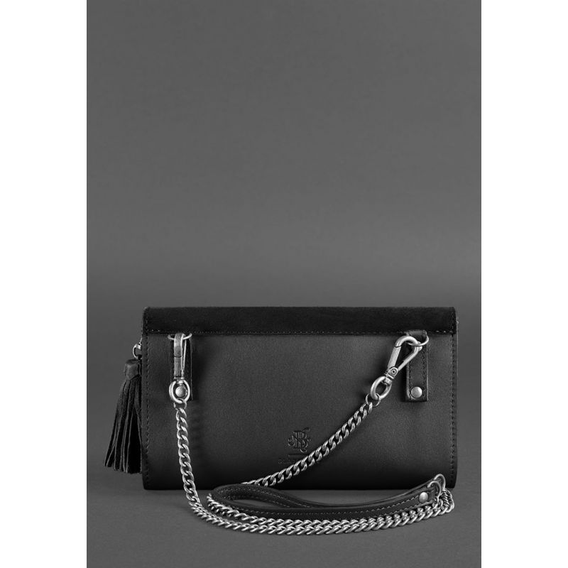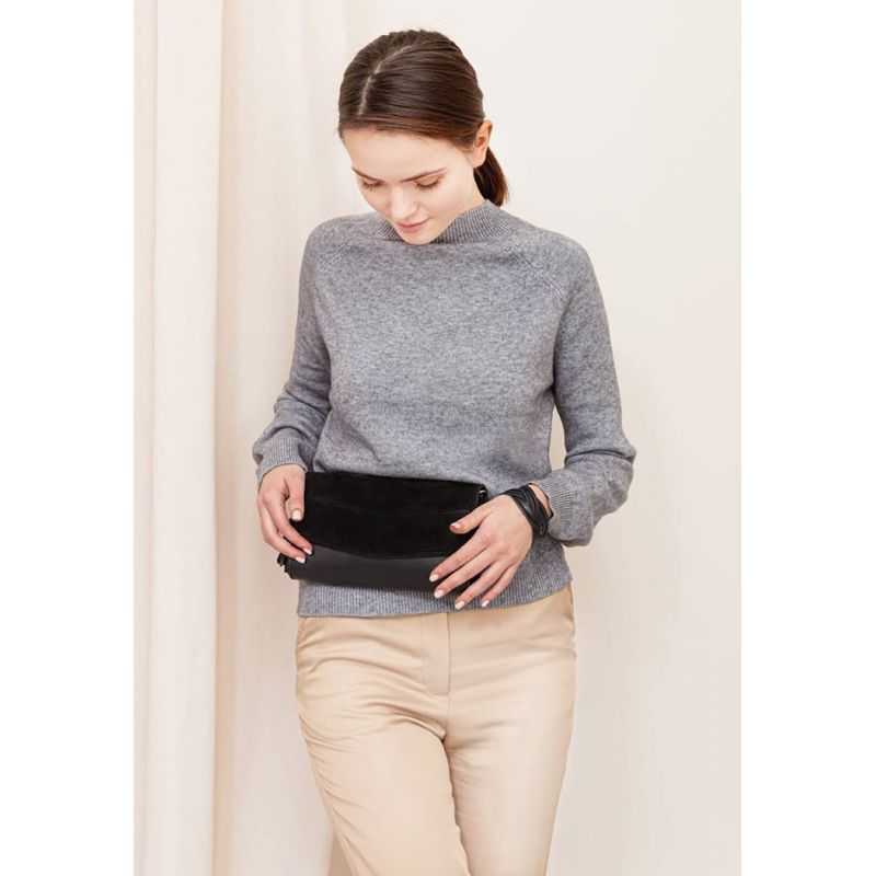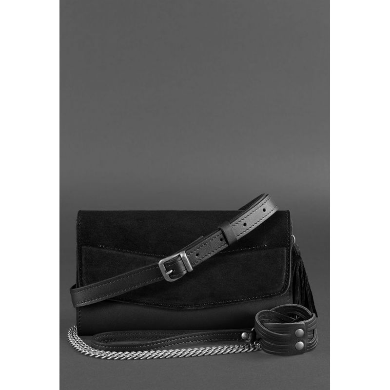 Стильная и элегантная сумка Элис выполнена из высококачественной кожи черного цвета с замшевой вставкой на клапане. Тандем натуральной кожи и замши предает этой модели особый шик и делает ее оригинальной. Такая сумка может сочетаться как с кожаной, так и с замшевой обувью и будет актуальна в любом сезоне.
