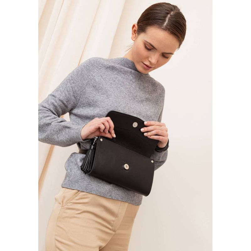 Сумку можно носить в руке или под рукой, прижав к себе, как клатч. Можно пристегнуть ремешок с цепочкой и носить на плече или через плечо. А если пристегнуть кожаный регулируемый ремешок, то Элис превратится в поясную сумку, которую можно носить не только на поясе. Такая поясная сумка будет гармонично смотреться даже с классическим деловым костюмом.