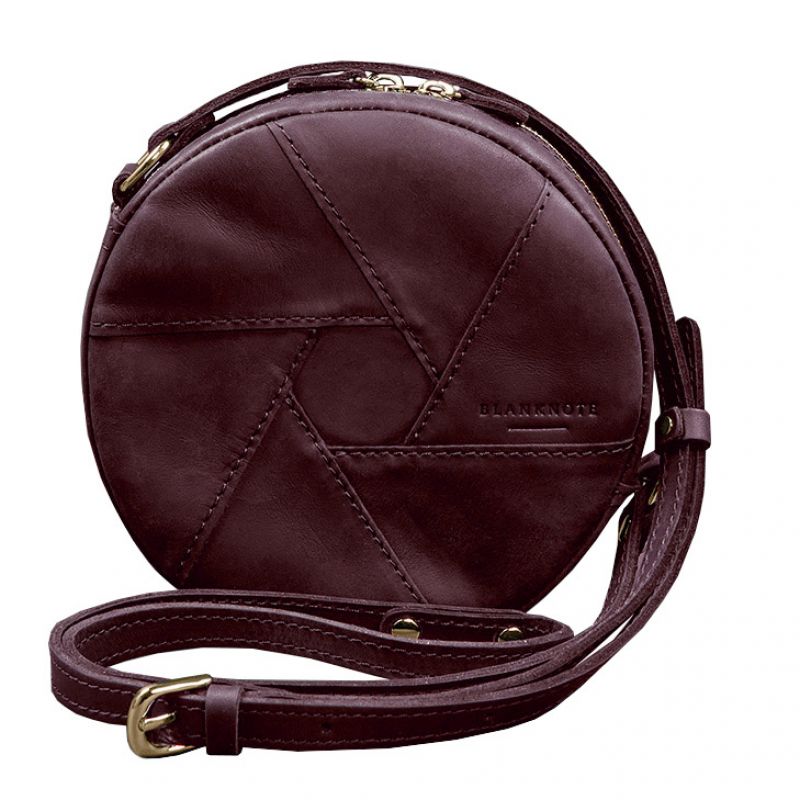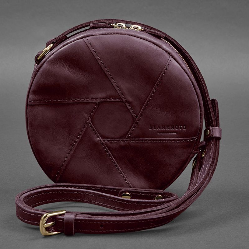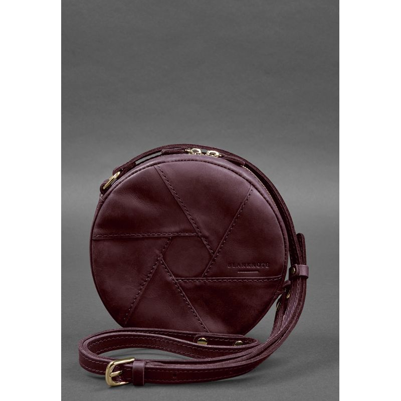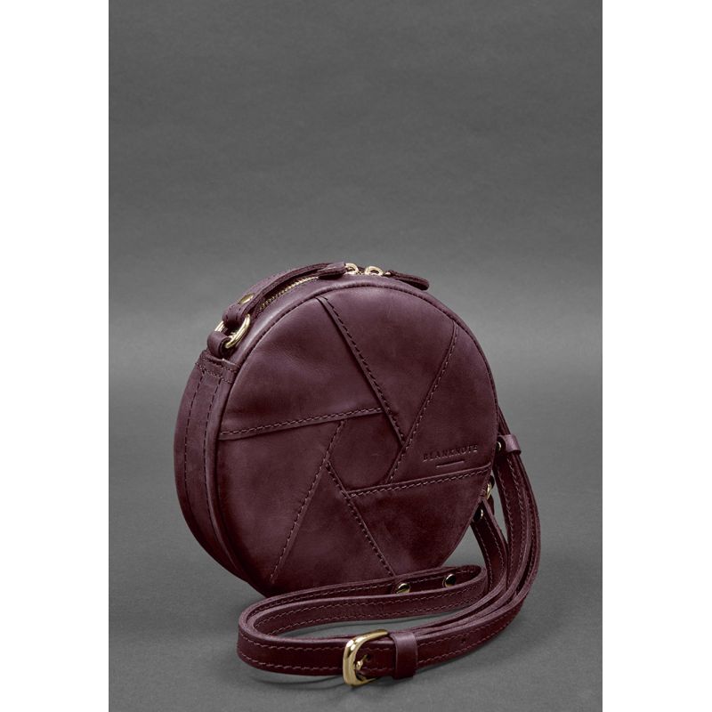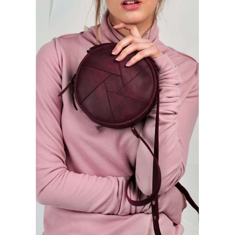 Кожаная круглая женская сумка Бон-Бон бордовая Crazy Horse