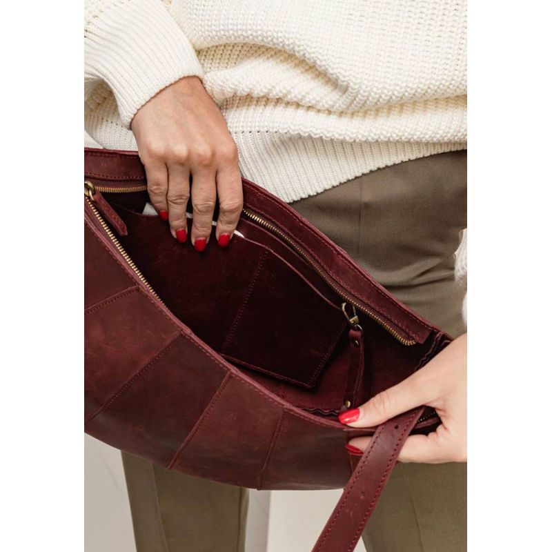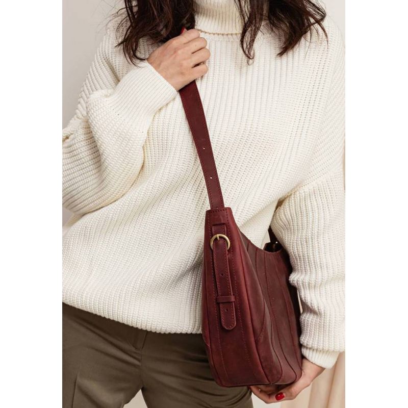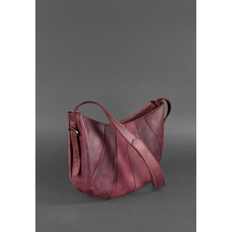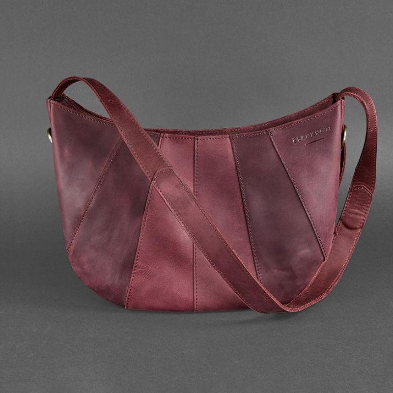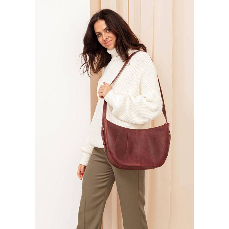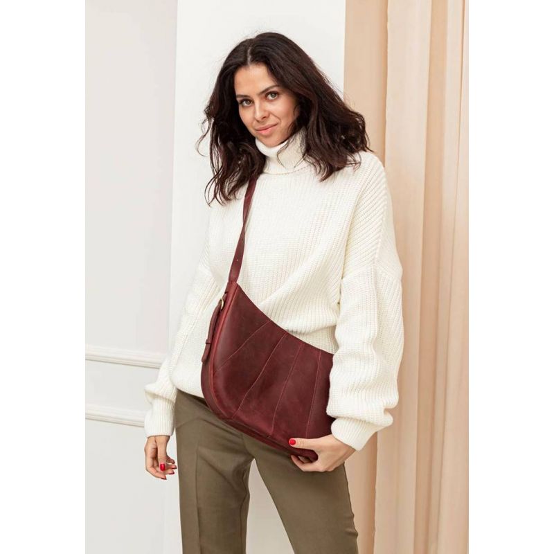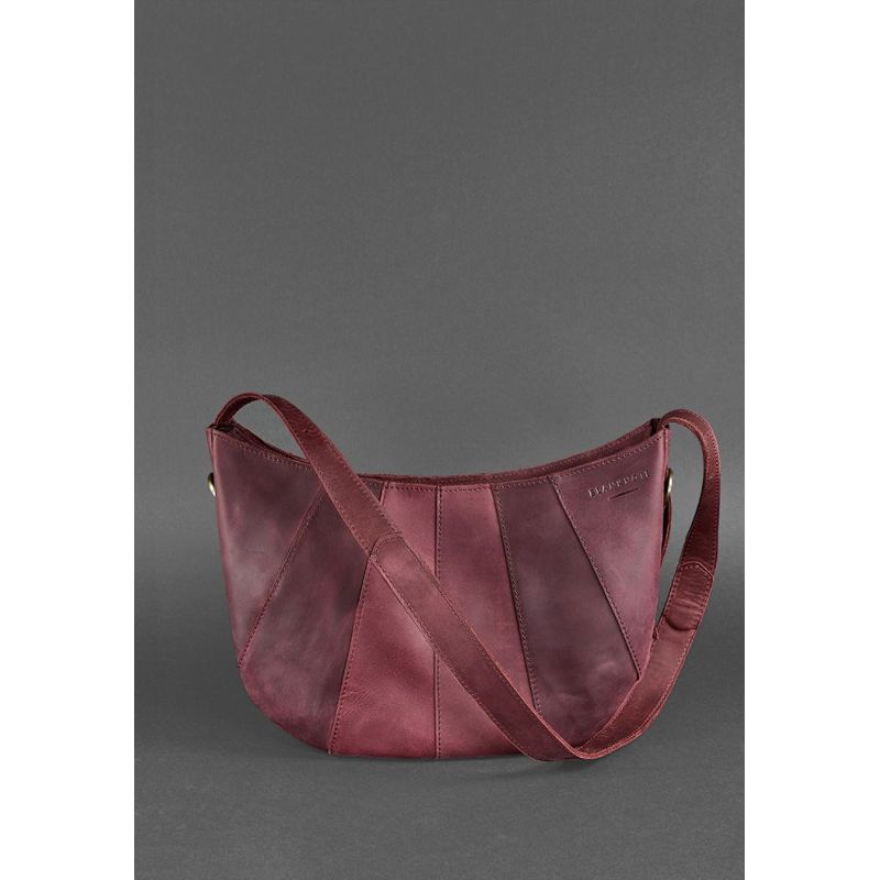 Кожаная женская сумка Круассан бордовая Crazy Horse