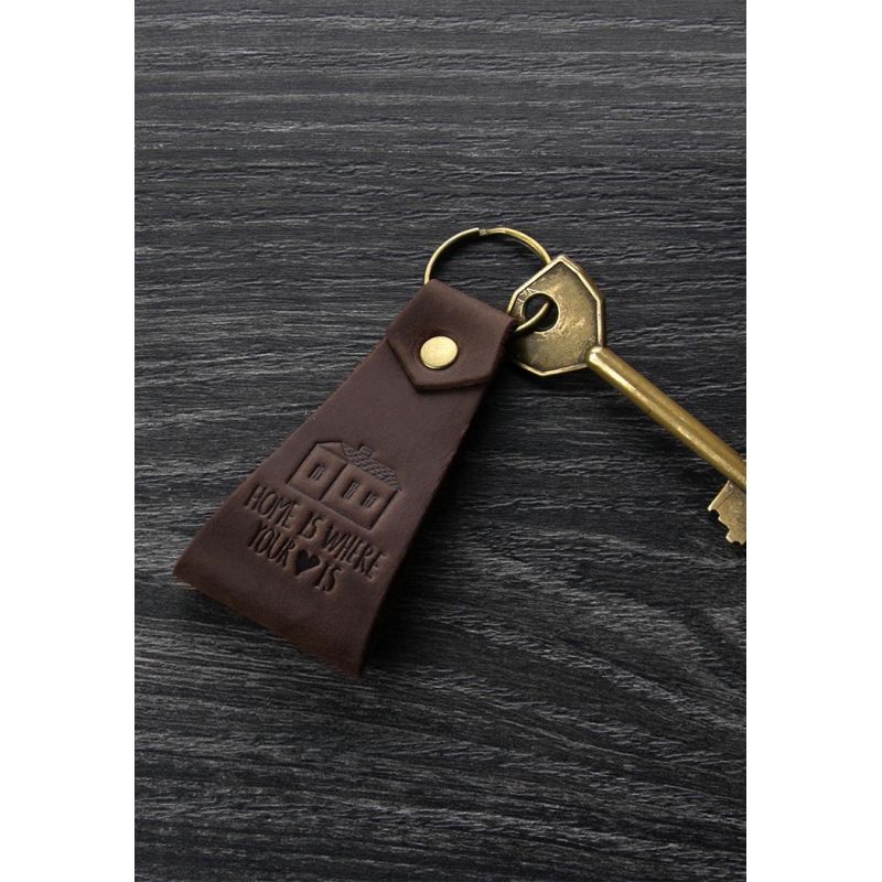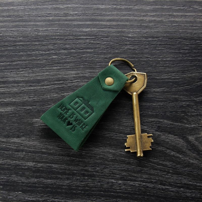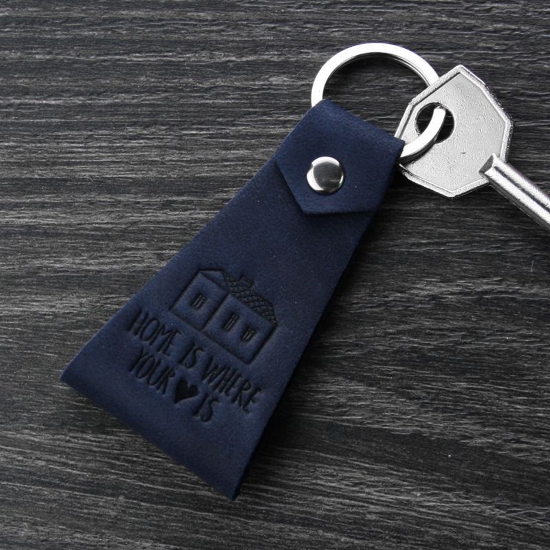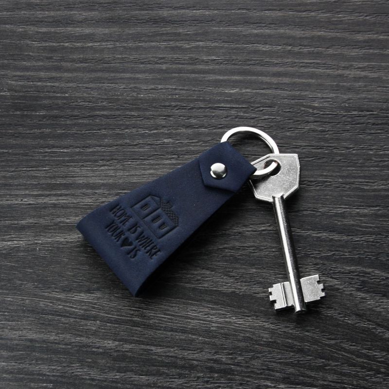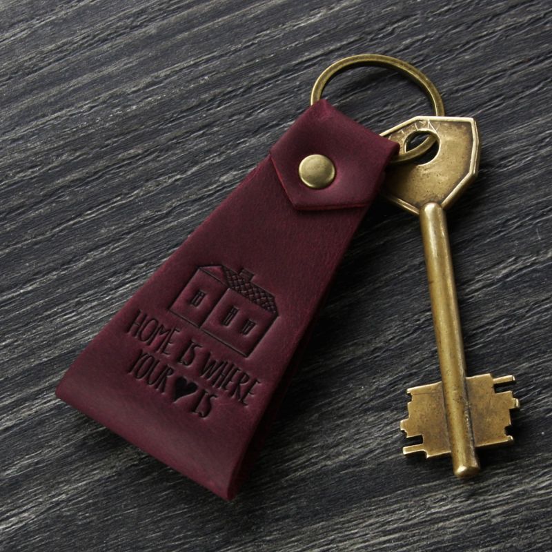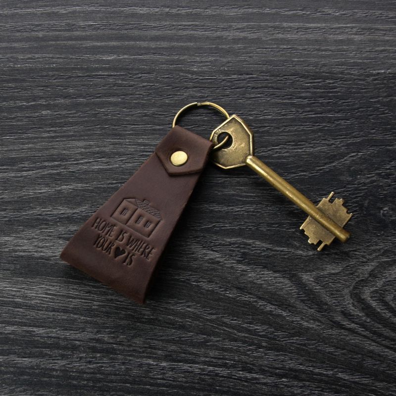 Двусторонний брелок из натуральной кожи со стильным тиснением. Ключи крепятся при помощи прочного металлического кольца. Теперь Вы их никогда не потеряете!