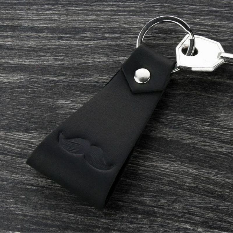 Двусторонний брелок из натуральной кожи со стильным тиснением. Ключи крепятся при помощи прочного металлического кольца. Теперь Вы их никогда не потеряете!