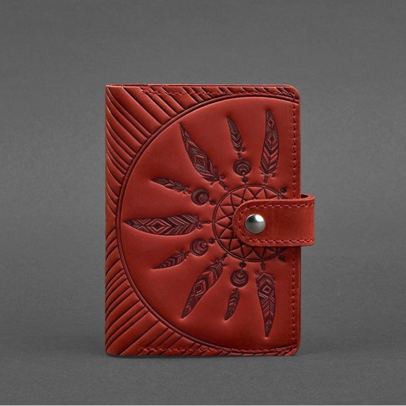 Истина стара как мир: детали делают образ. Без интересных аксессуаров даже самый, казалось бы, продуманный look покажется пресным. Поэтому мы так любим добавлять изюминку и другие сухофрукты нашим изделиям:) Обложка для паспорта «Инди» – отличное тому доказательство. Сделанная из добротной кожи, она стала идеальным холстом для изображения ловца снов. Тиснение настолько четкое и аккуратное, что невозможно перестать скользить по нему пальцами! Почему именно ловец снов? Индейцы верят, что он оберегает от злых духов и неудач. В нашем случае – от потери важных вещей. Функциональная составляющая продумана до мелочей: отделение для паспорта и два дополнительных отделения (например для загранпаспорта и вида на жительство). Кроме того, есть два отделения для банковских или дисконтных карт. Обложка закрывается на хлястик с металлической кнопкой – удобно и надежно. В комплекте с обложкой, как обычно, маленький сюрприз от мастерской BlankNote - мини-блокнотик для записи Ваших интересных идей или планирования путешествий. Изделие сделано полностью вручную в нашей мастерской, из натуральной кожи. Гарантия на обложку - 3 года с момента покупки. ВНИМАНИЕ! Выделка данной кожи предполагает естественное появление на ней царапин и потертостей в ходе использования! От этого изделие становится более индивидуальным и приятным, это оценят настоящие поклонники винтажного стиля:)  А так же первое время кожа может краситься при сильном трении об другие предметы  - это особенность её выделки, постепенно этот эффект уменьшается,  кожа полируется и приобретает чуть глянцевый эффект. Фурнитура и комплектация может быть изменена производителем