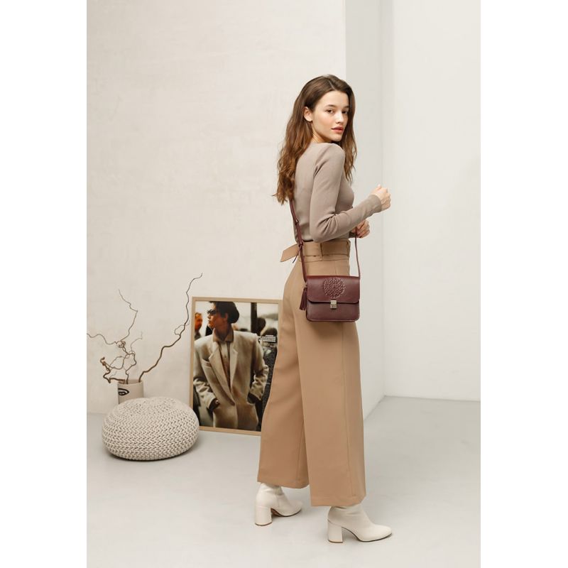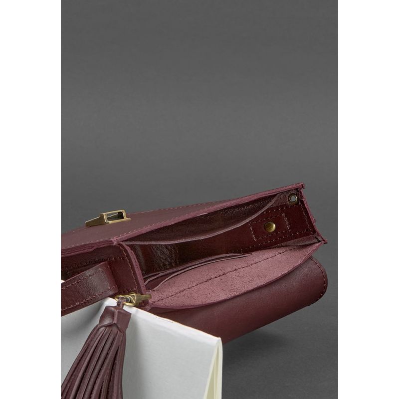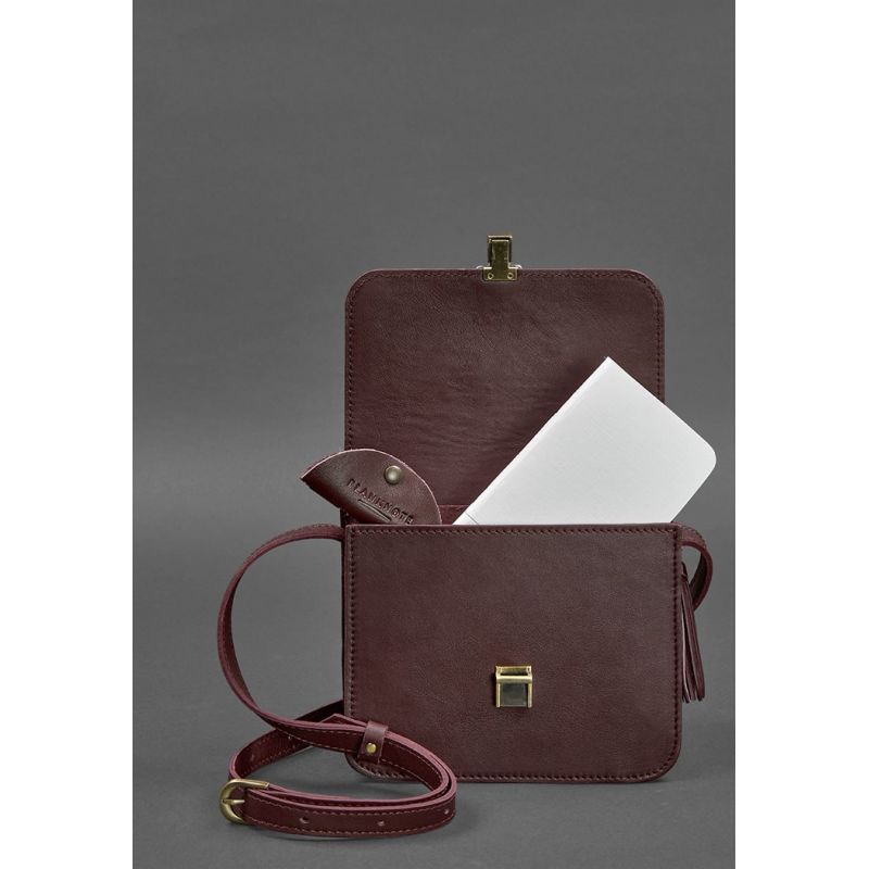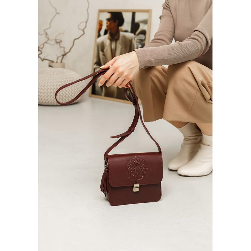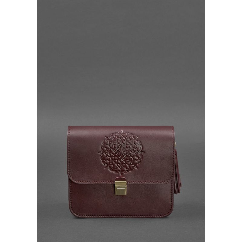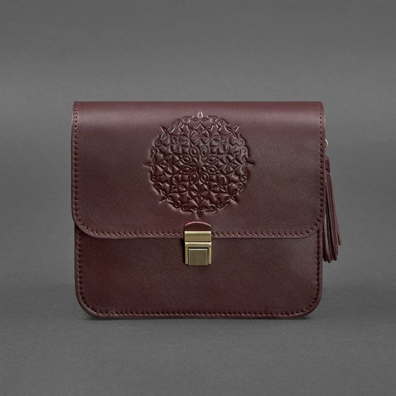 Кожаная женская бохо-сумка Лилу бордовая Krast БланкНот (BN-BAG-3-vin-man) – миниатюрная модель, которая идеально подходит для тех случаев, когда большую сумку не хочется, а незаменимую мелочь (ключи, деньги, телефон) нужно взять с собой. Бордовая сумка через плечо изготовлена из натуральной кожи краст. Это достаточно плотная натуральная кожа (2мм), которая отлично держит форму. Внутри сумки два отделения: просторное – основное и узкое отделение для телефона или блокнота . Также имеются маленькие кармашки для карточек и небольших документов. Для быстрого доступа к мелочам, которые всегда должны быть под рукой, предусмотрен внешний карман на задней стенке сумочки Длину кожаного плечевого ремешка можно легко регулировать. Украшена бордовая сумка BlankNote Лилу съемной кисточкой, которая может использоваться как брелок. На передней части женской сумки расположено тиснение в виде индийской мандалы. Закрывается кожаная сумка на металлический портфельный замочек В дизайне сумки через плечо предусмотрено наличие небольшого колечка-люверса, для крепления ключей, монетниц и прочих мелочей. В комплекте с сумкой идет бордовый холдер для наушников и проводов и тетрадка с повторением мотива «мандала». 5 причин купить Кожаную женскую бохо-сумку Лилу бордовую Krast (BN-BAG-3-vin-man) от BlankNote Универсальный бордовый цвет, который идеально подойдет и для зимнего, и для летнего гардероба Простой лаконичный дизайн, позволит легко сочетать модную сумку через плечо Лилу с разными стилями Пошита сумка полностью вручную из прочной натуральной кожи Упакована сумка в крафтовую коробку Наша мастерская предоставляет гарантию 3 года на сумку из натуральной кожи Вы можете купить кожаную женскую бохо-сумку Лилу бордовую Krast (BN-BAG-3-vin-man) в составе набора кожаных аксессуаров Бордо Краст . Кожаная сумка Лилу будет отлично сочетаться с бордовым кожаным кошельком 2.1 Гарантия на сумку - 3 года с момента покупки *Фурнитура и комплектация может быть изменена производителем
