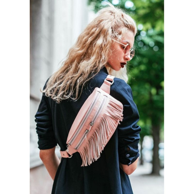 Кожаная женская сумка на пояс Spirit розовая