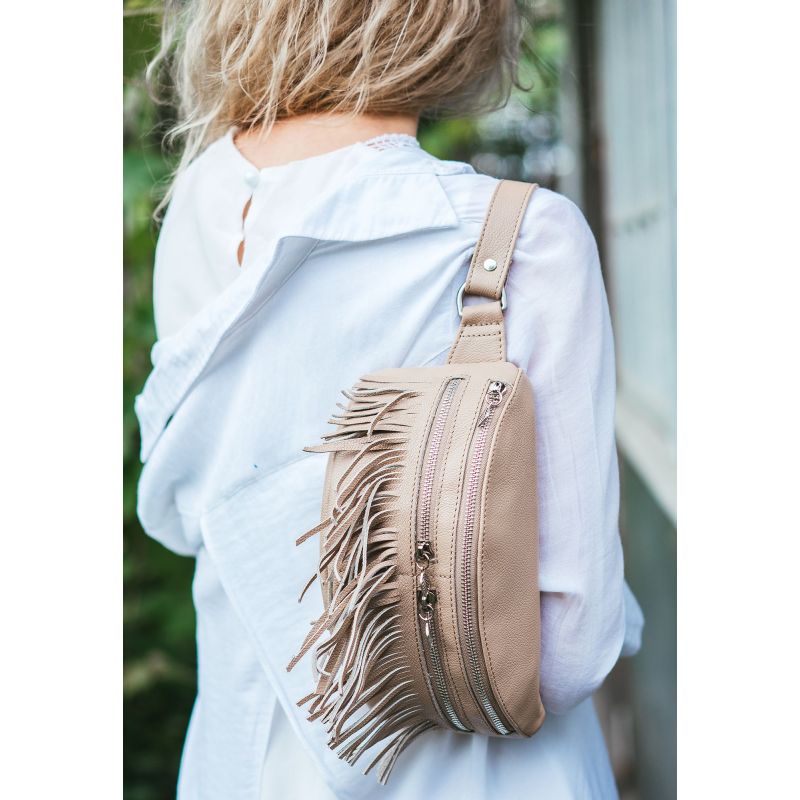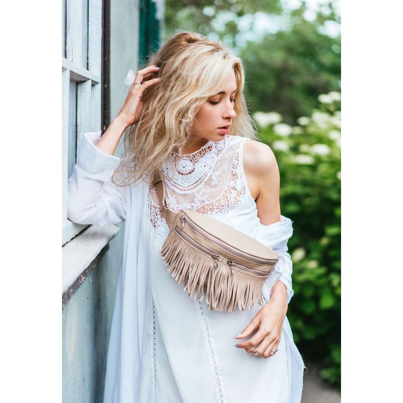 Кожаная женская сумка на пояс Spirit светло-бежевая