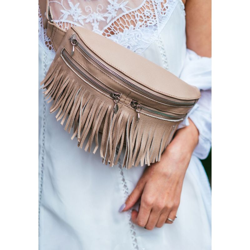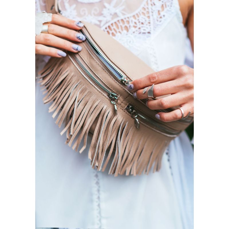 Поясная сумка Spirit из натуральной кожи в цвете крем-брюле отображает в себе дух свободолюбивых хиппи, мистическую силу индейцев и бунтарские настроения миллениалов. Именно эти стили и эпохи вдохновили нас на создание такой сумки.