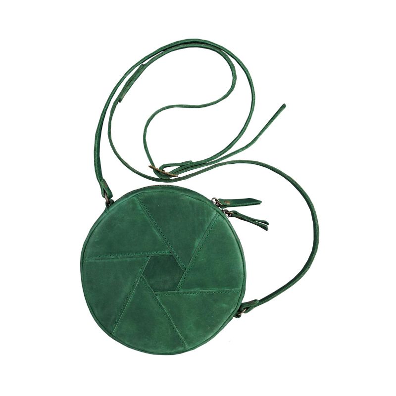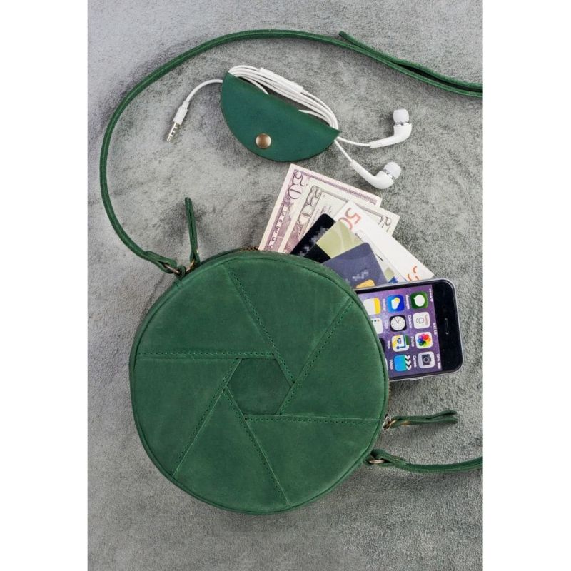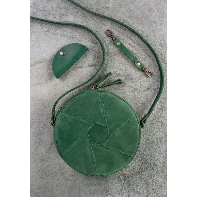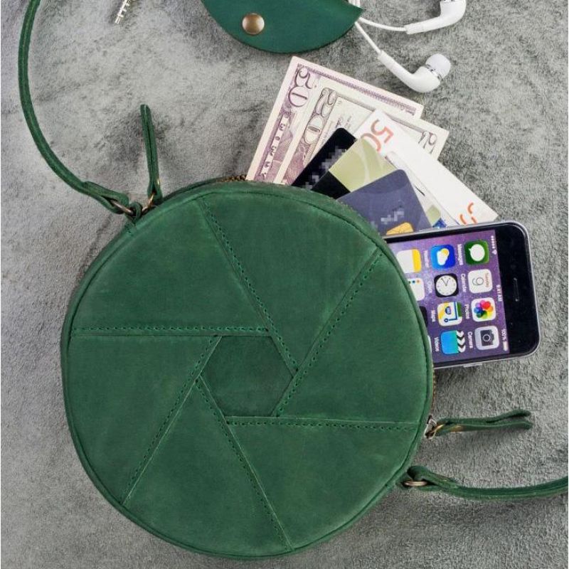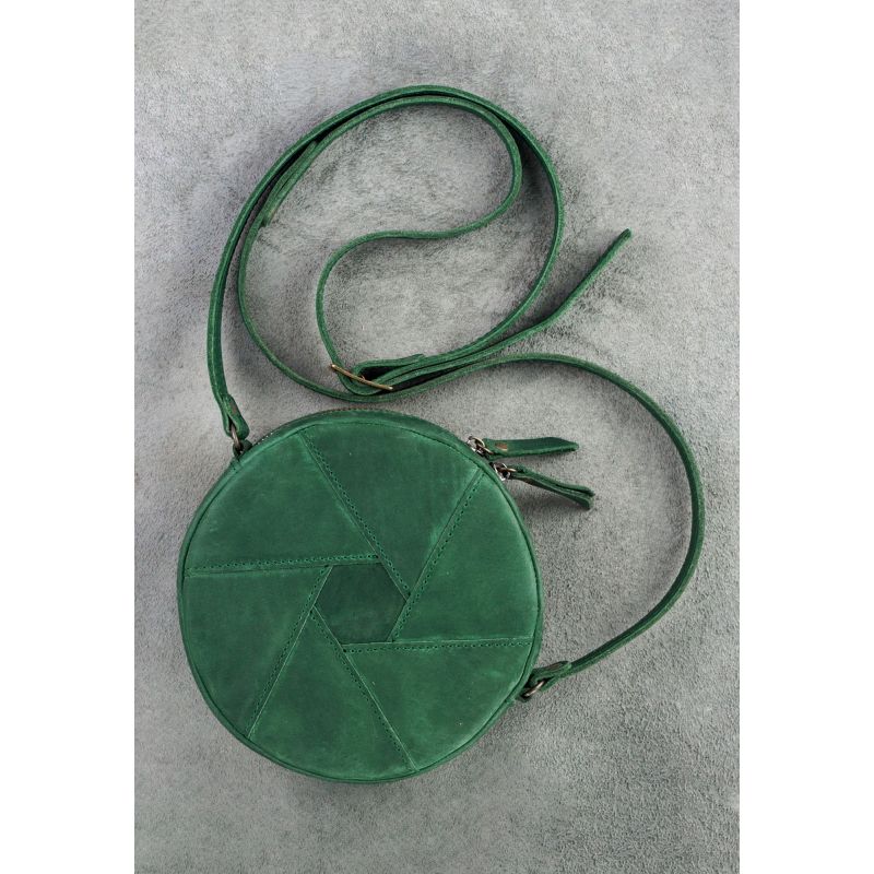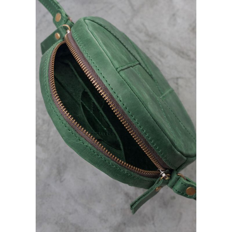 Кожаная круглая женская сумка Бон-Бон зеленая Crazy Horse
