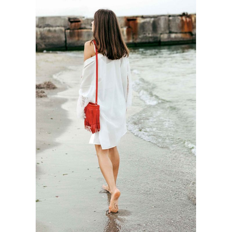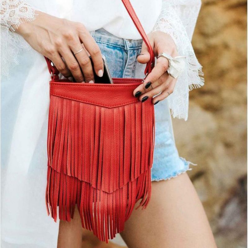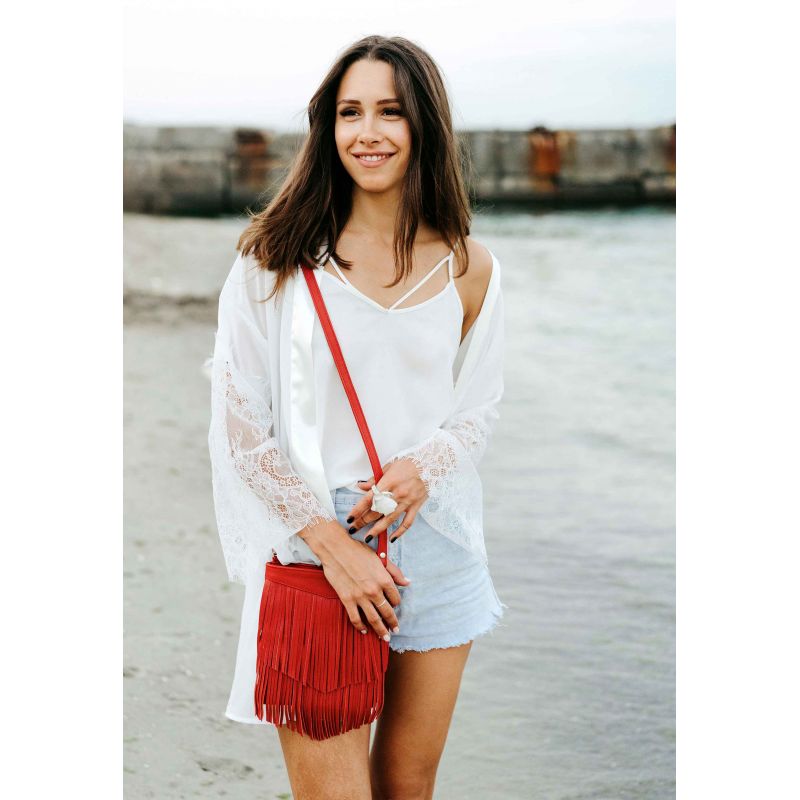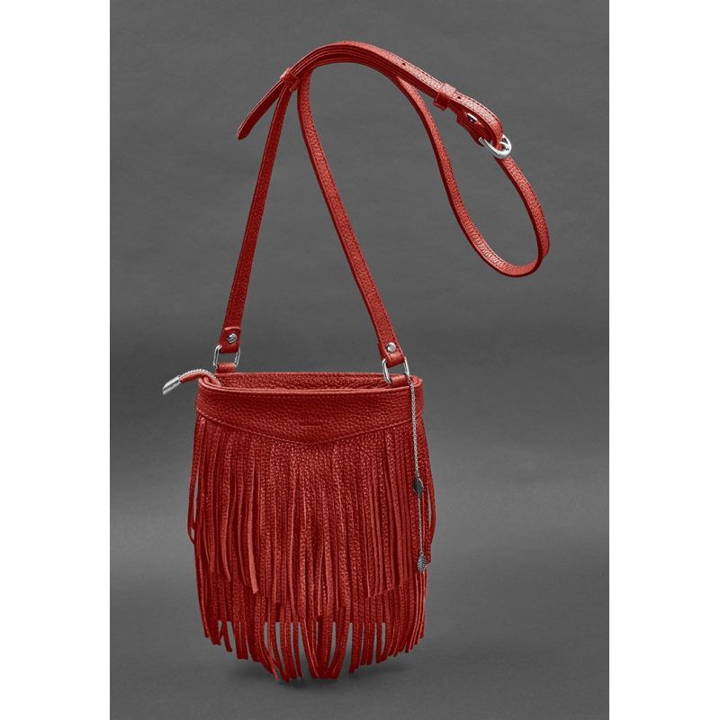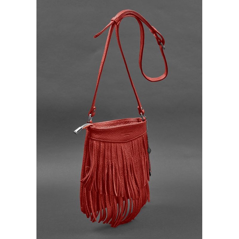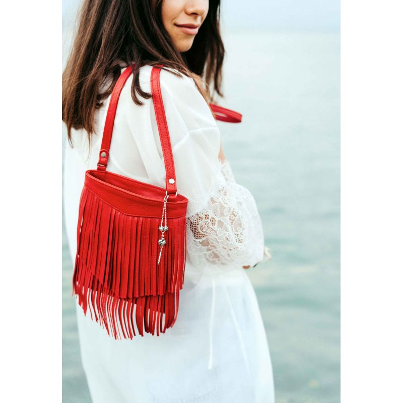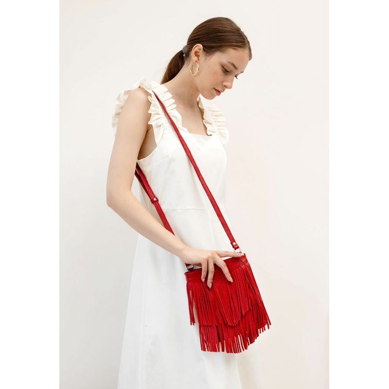 Кожаная женская сумка с бахромой мини-кроссбоди Fleco красная