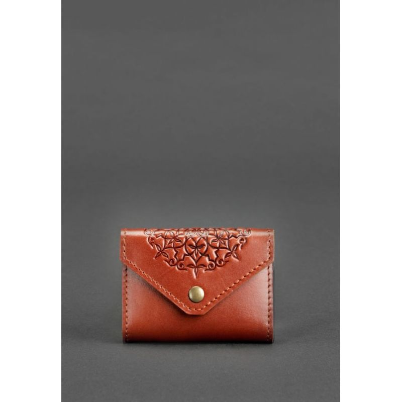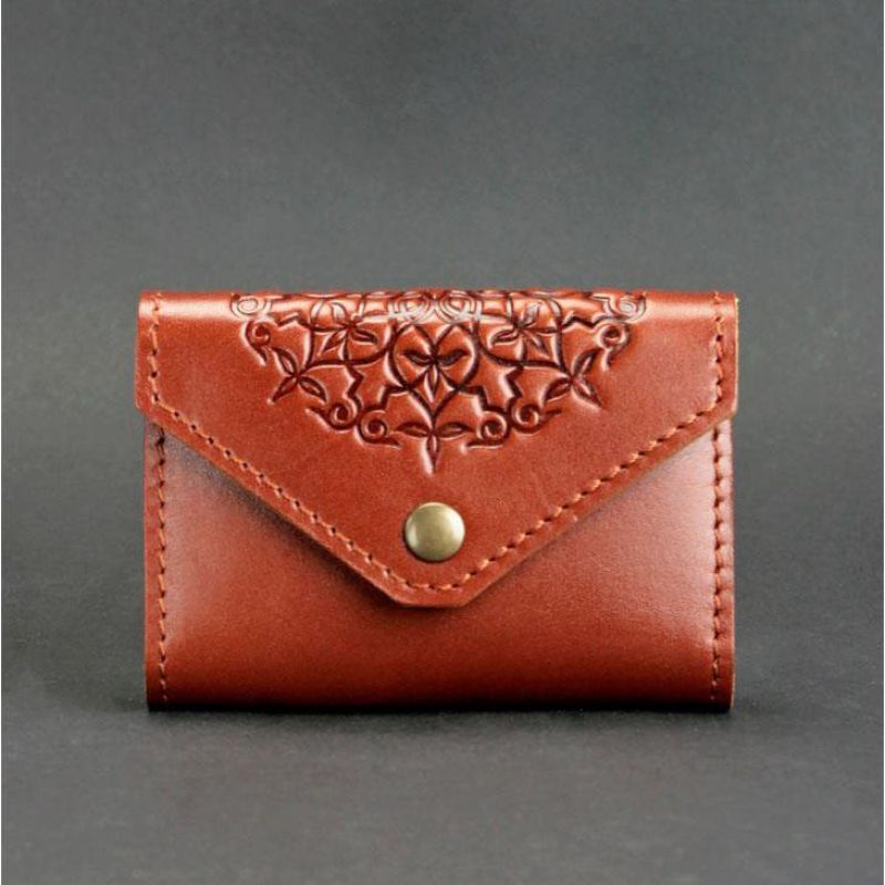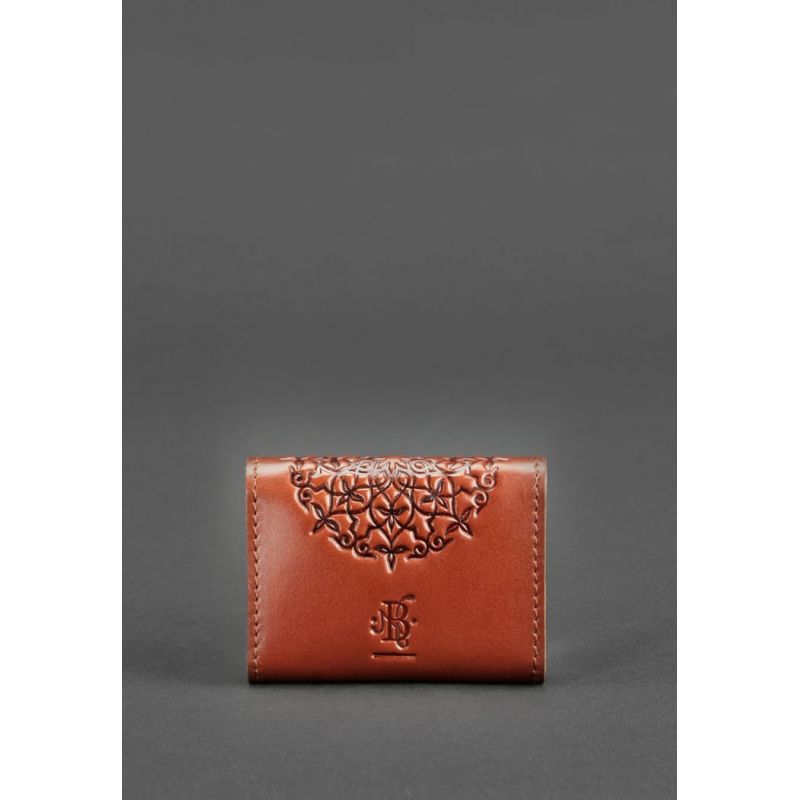 Кожаный кард-кейс 3.0 светло-коричневый с мандалой