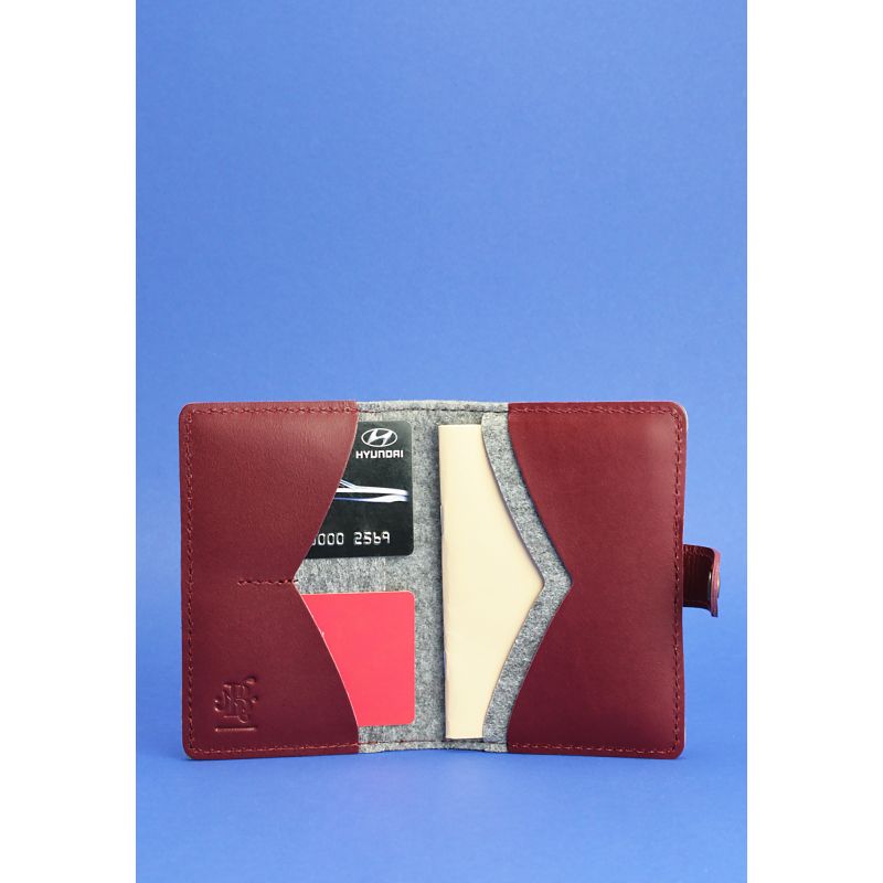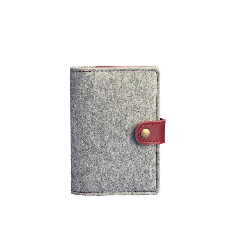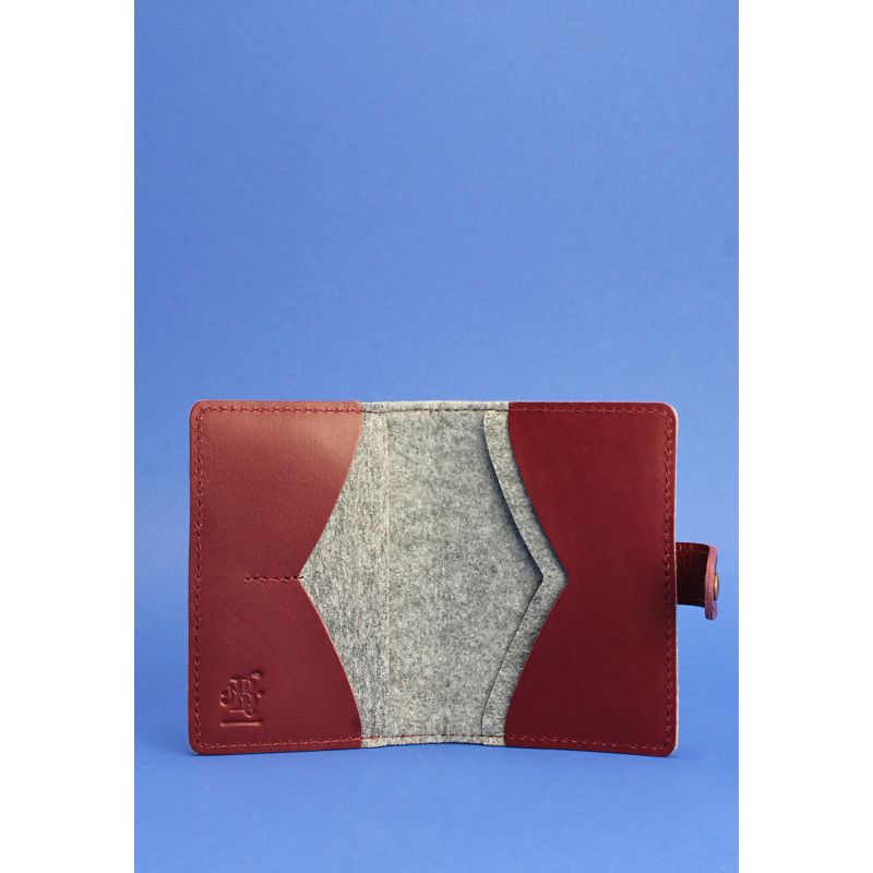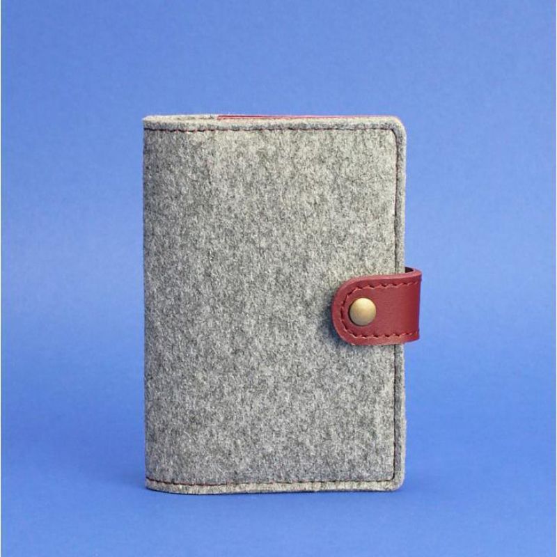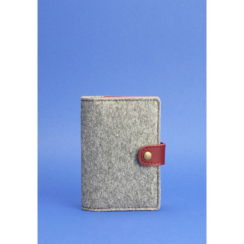 Фетровая обложка для паспорта 3.0 с кожаными бордовыми вставками