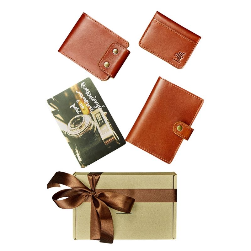 Как часто при выборе подарка мы мечемся из магазина в магазин, перерываем тонны информации на сайтах в поисках достойного подарка для друга, коллеги или члена семьи. Чтобы сделать вашу жизнь проще, а выбор подарков не утомительным, мастерская BlankNote создала подарочные наборы из самых необходимых предметов в повседневной жизни. Мы подобрали изделия, которые дополняют друг друга по функционалу, стилю, а также цветовой гамме. В подарочный Набор аксессуаров "Чикаго" входит: Портмоне ZEUS, коньяк Стильное компактное портмоне. Два отделения для купюр, отделение для  карт и монетница.  Обложка на паспорт 3.0, коньяк Стильная и функциональная обложка для паспорта, в которой поместится не только паспорт, а и пластиковые карты, или например, водительские права. Кард-кейс 4.0, коньяк. Удобный кард-кейс для хранения документов, которые необходимо время от времени демонстрировать: водительские права, пропускной для работы, студенческий, ученический, проездной на метро и т.д. Имеет 2 кармашка с окошком и 1 обычный.  Открытка с важными словами, которые мотивируют! Фурнитура и комплектация может быть изменена производителем