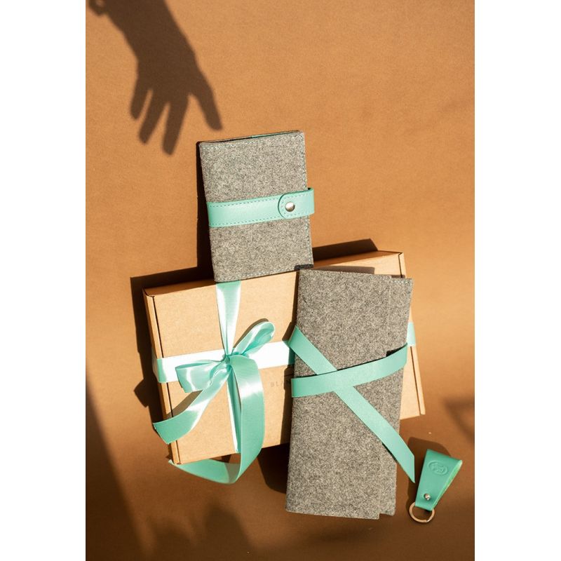 Фетровая обложка для паспорта 1.1 с кожаными бирюзовыми вставками - она станет идеальным хранителем ваших документов;