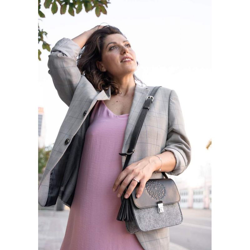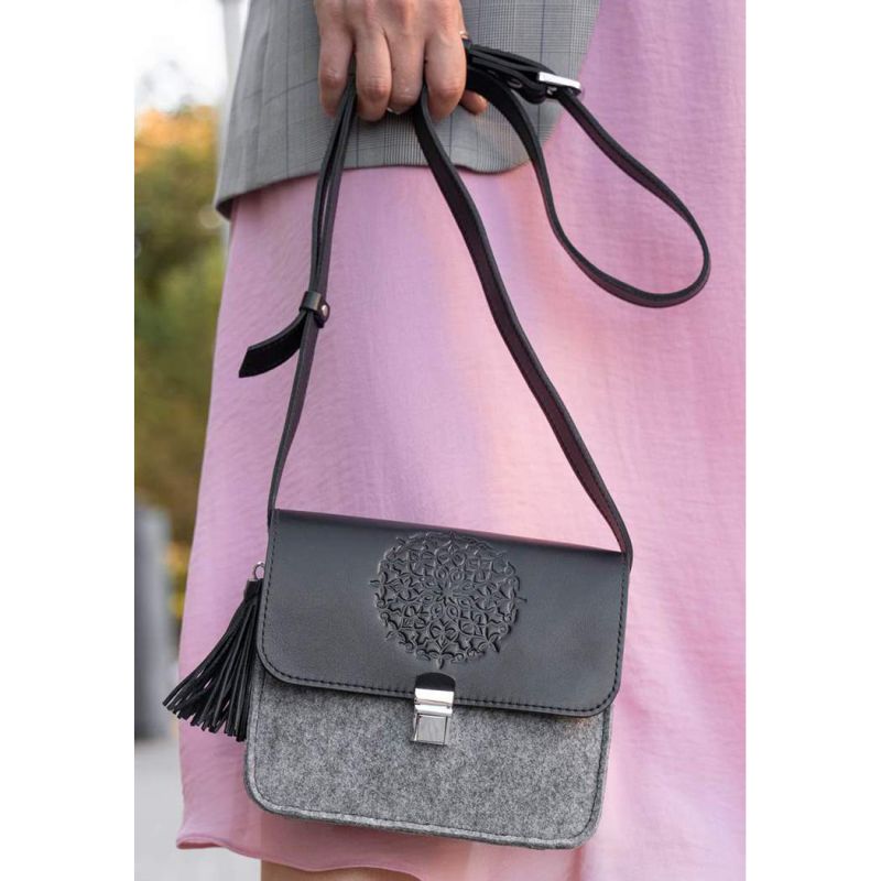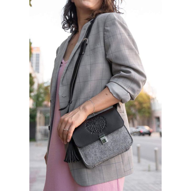 Фетровая женская бохо-сумка Лилу с кожаными черными вставками
