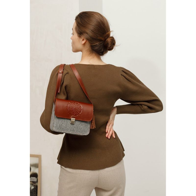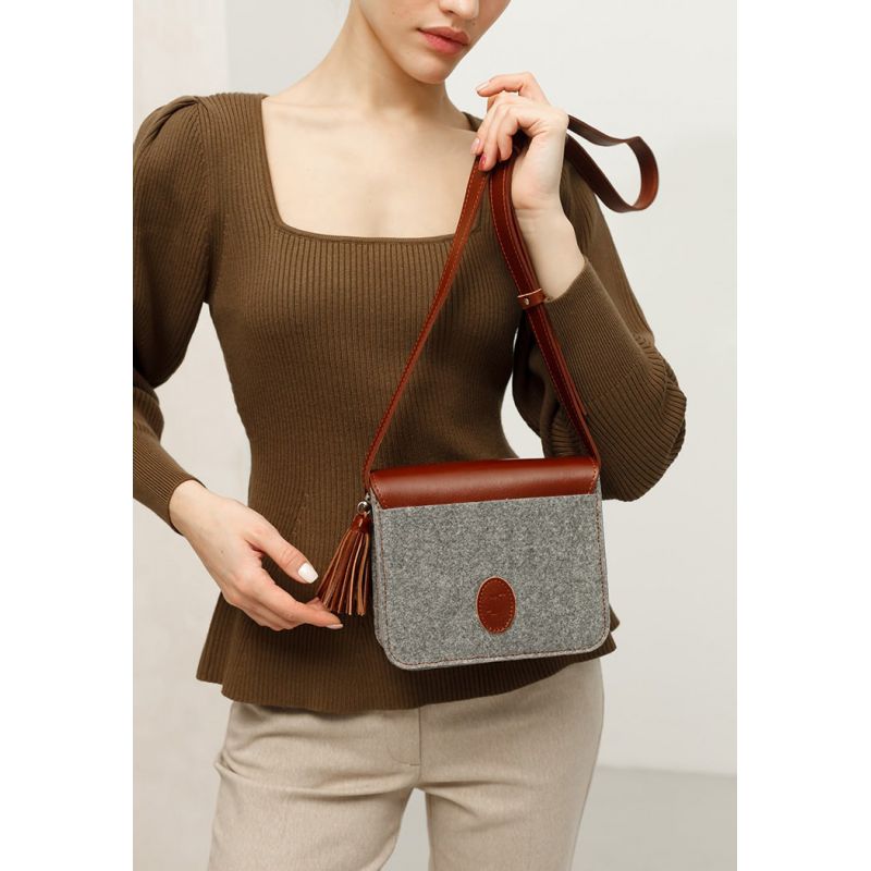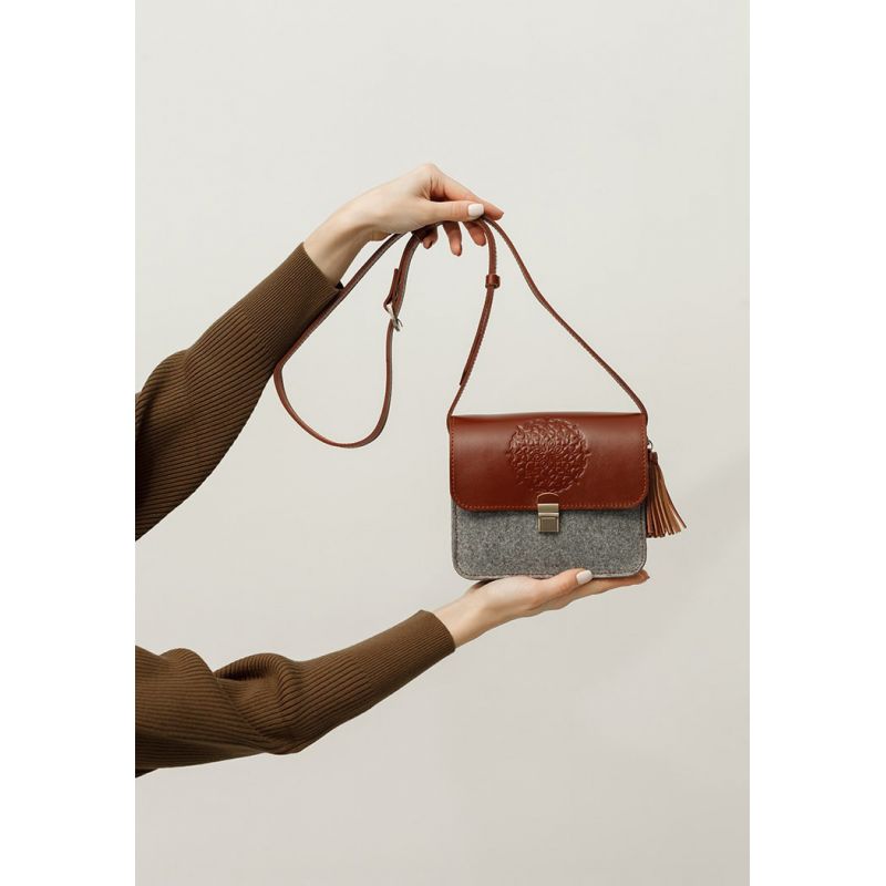 Фетровая женская бохо-сумка Лилу с кожаными коричневыми вставками