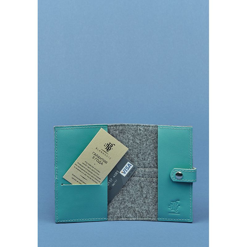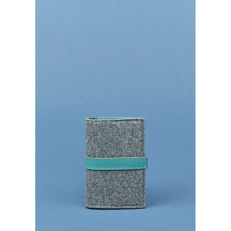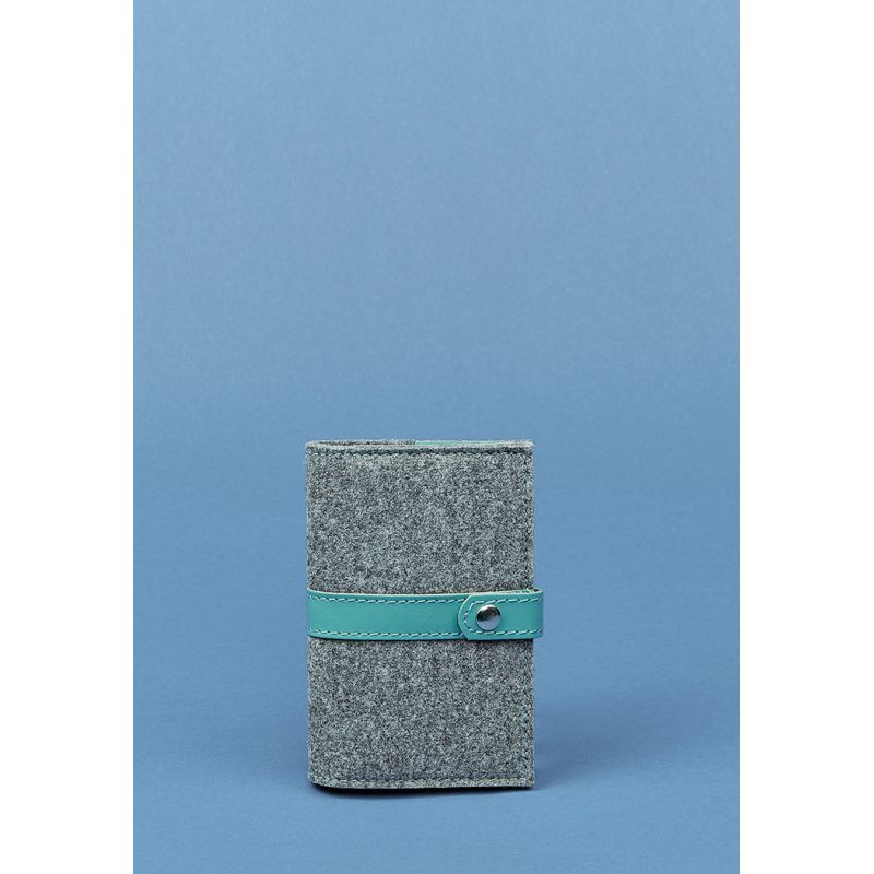 Фетровая женская обложка для паспорта 1.1 с кожаными бирюзовыми вставками