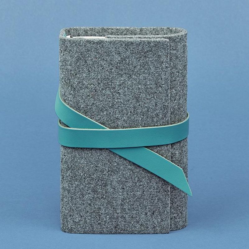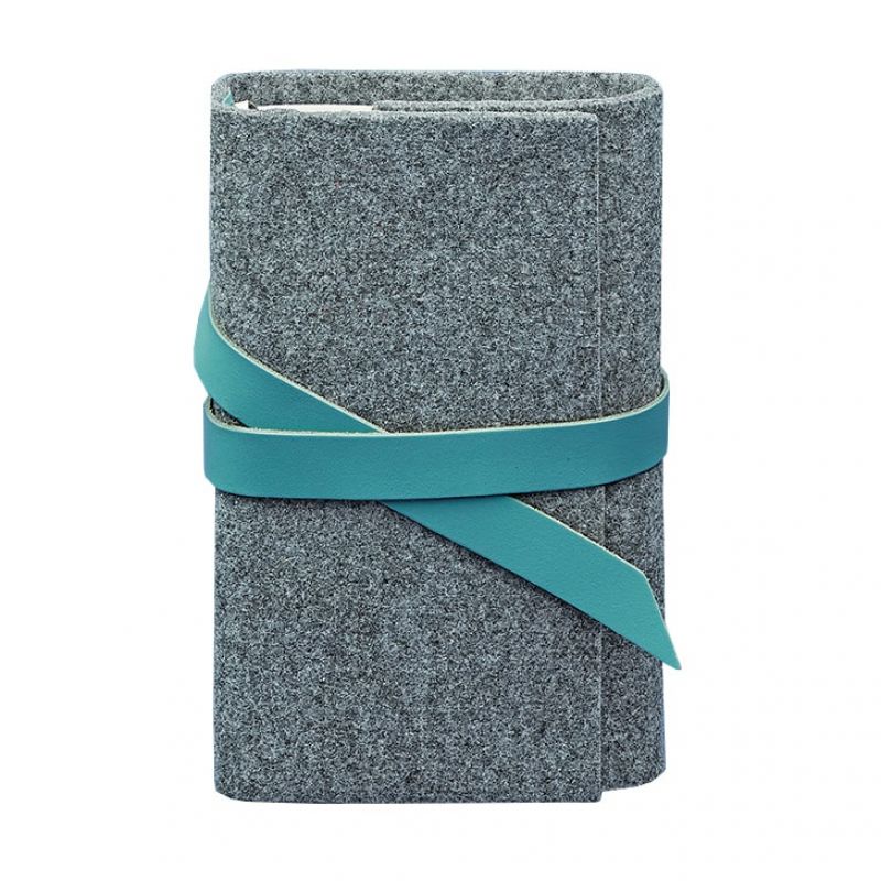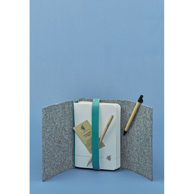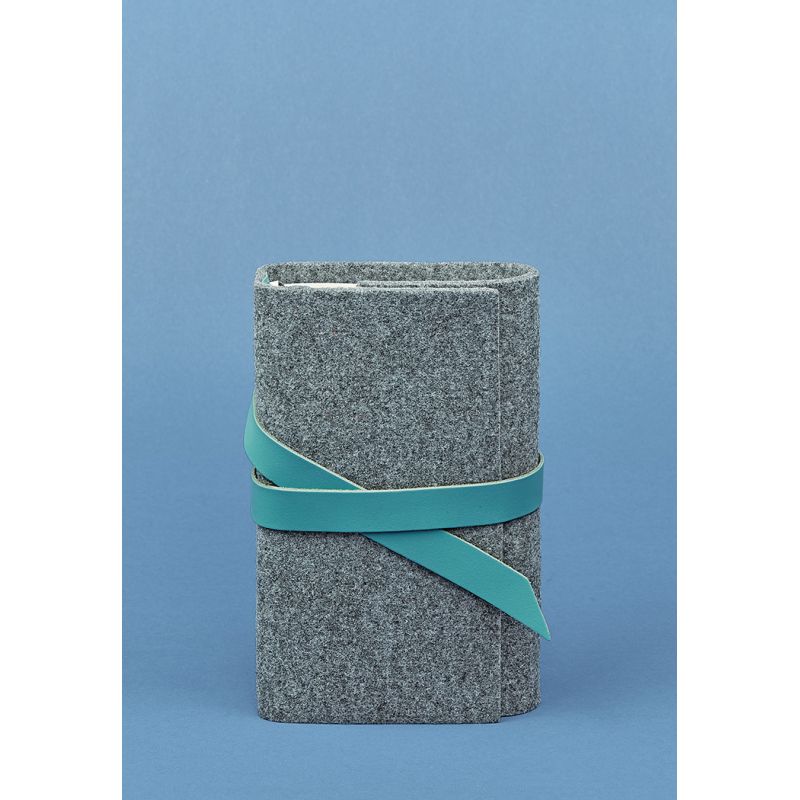 Фетровый женский блокнот (Софт-бук) 1.0 с кожаными бирюзовыми вставками