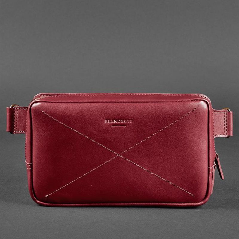 Кожаная поясная сумка Dropbag Maxi бордовая Krast
