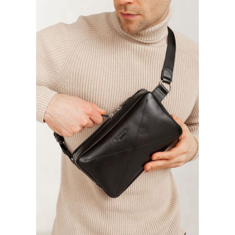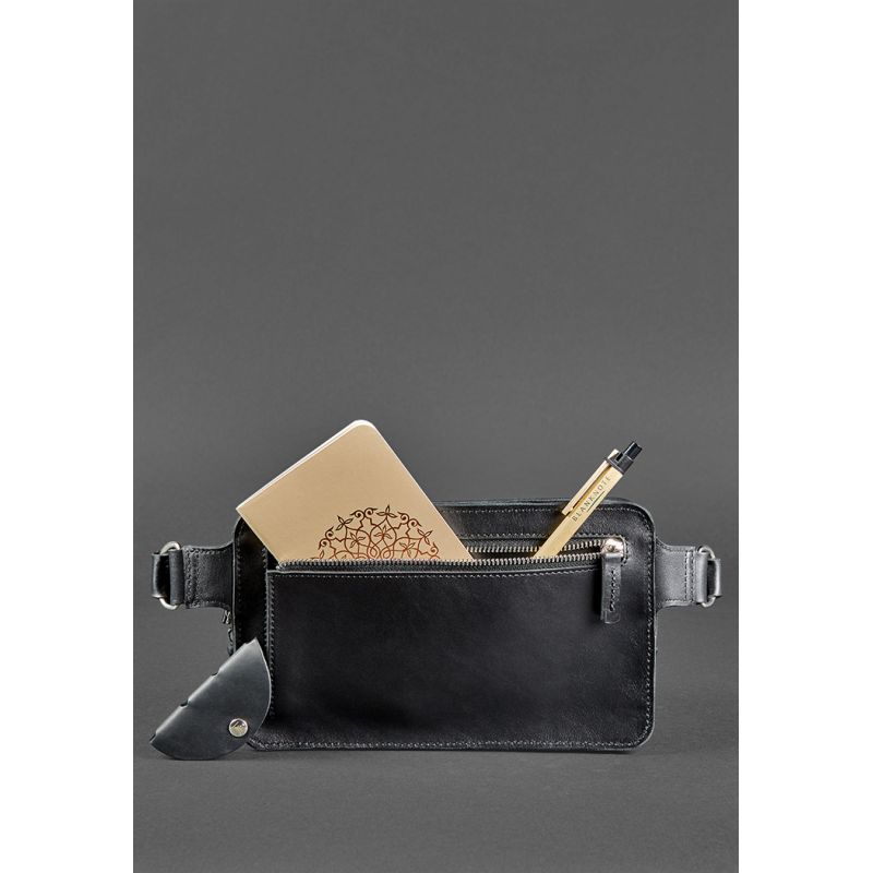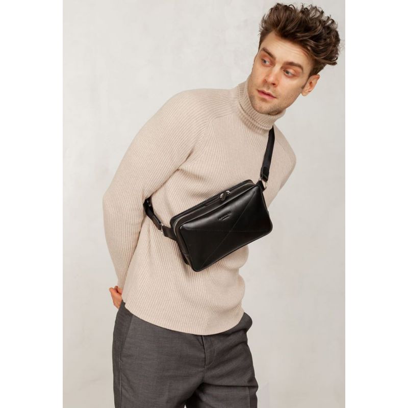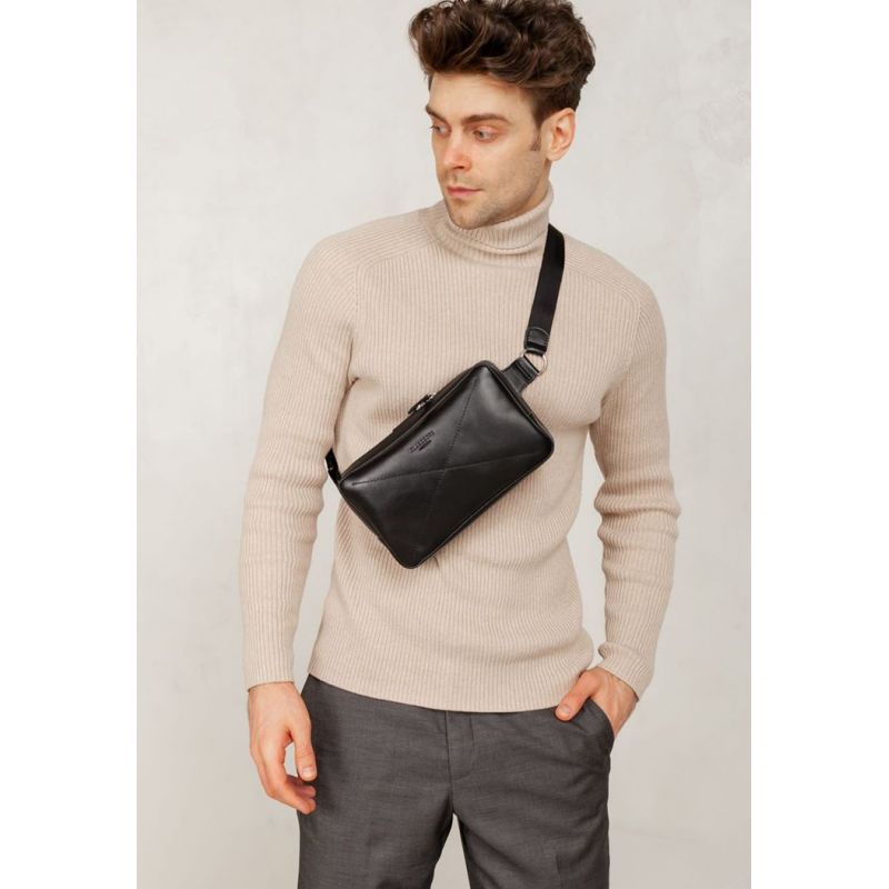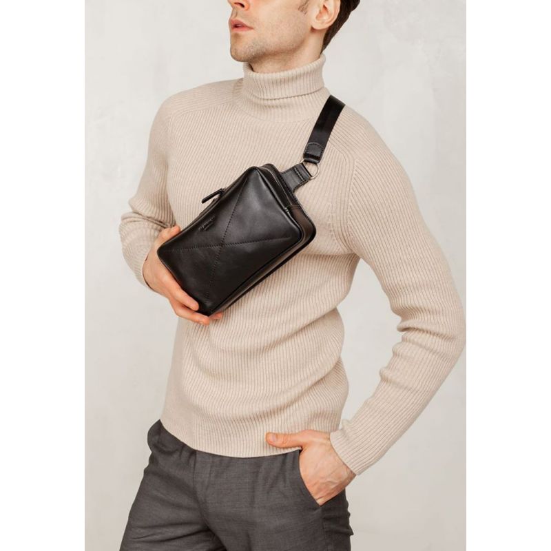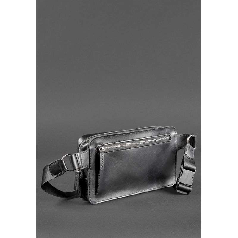 Мужская кожаная поясная сумка Dropbag Maxi черная Krast