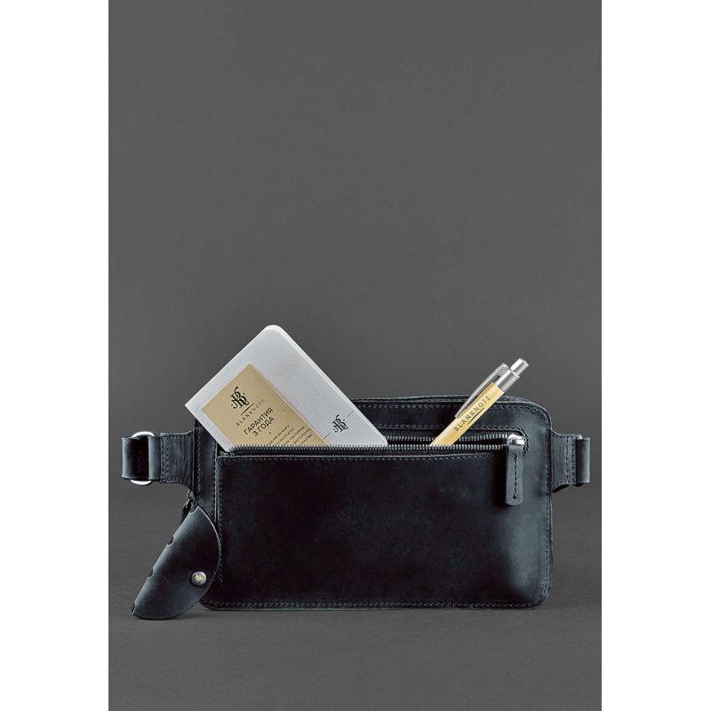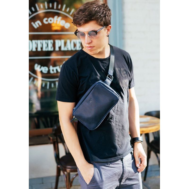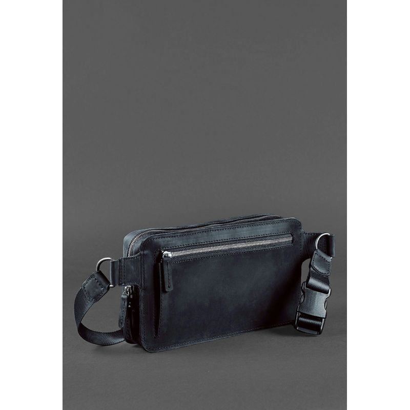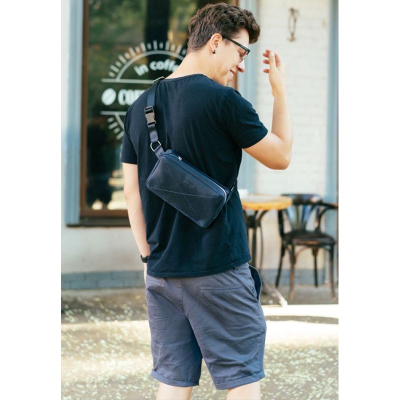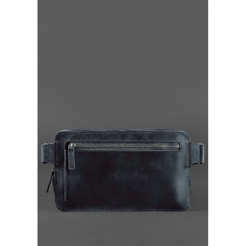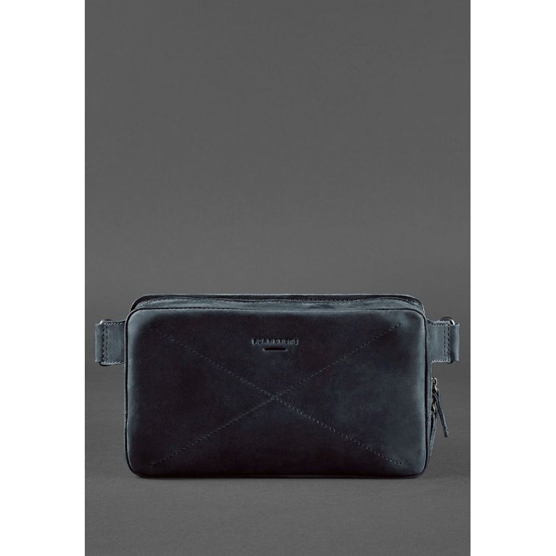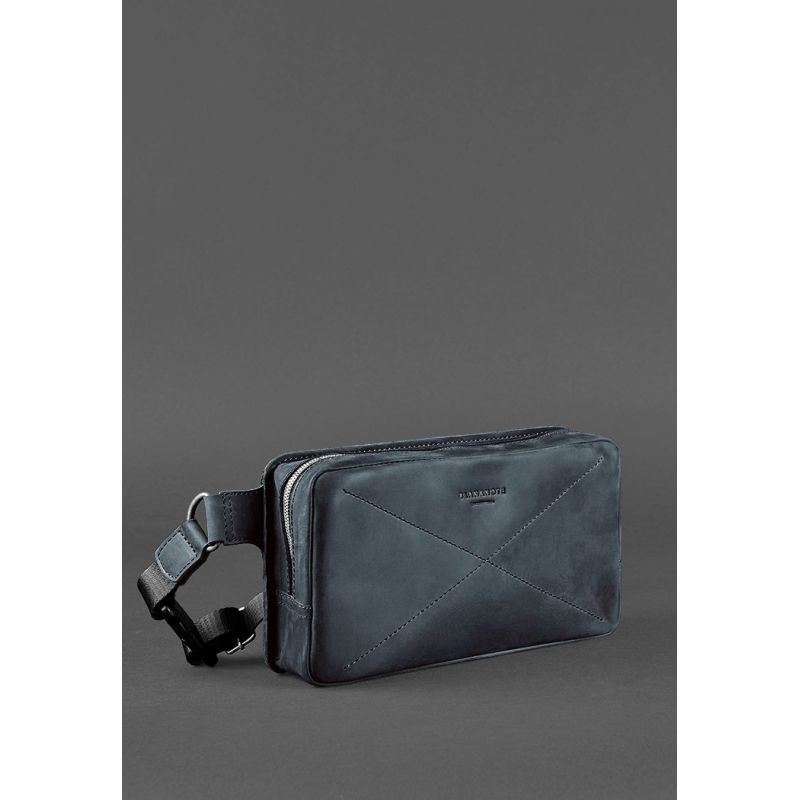 Кожаная поясная сумка Dropbag Maxi синяя Crazy Horse