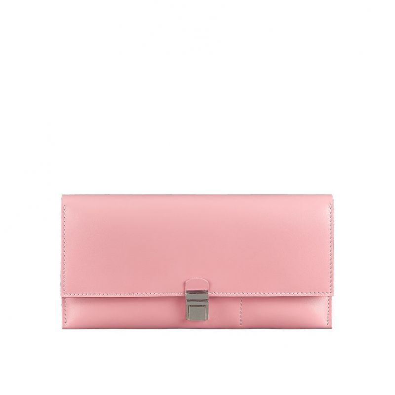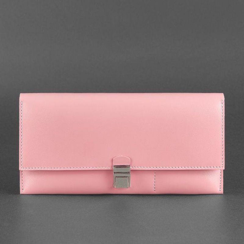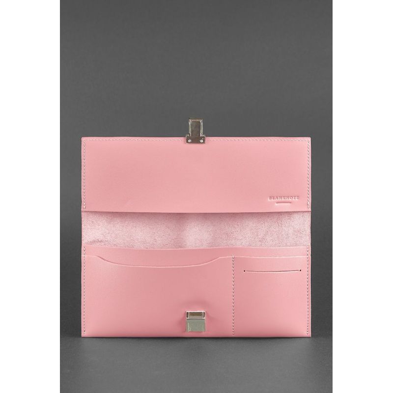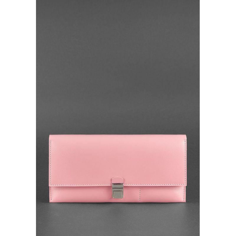 Выполнена модель из натуральной кожи очень нежного розово-персикового цвета. Внутри много отделений и карманов – каждая вещь будет иметь свое место. Закрывается холдер на красивый портфельный замок.