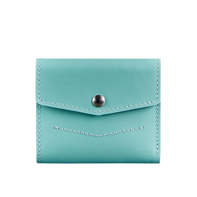 Кошелек в два сложения имеет отделение для купюр, два слота для карточек и визиток. А также вместительную монетницу, которая закрывается на кнопку.