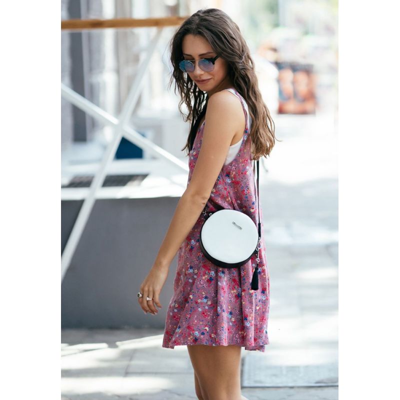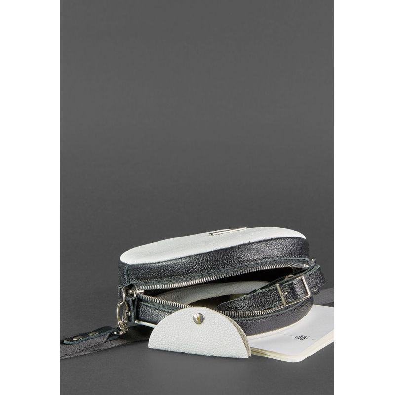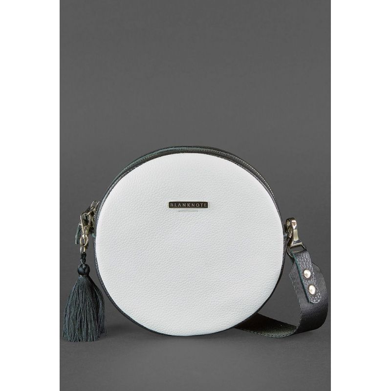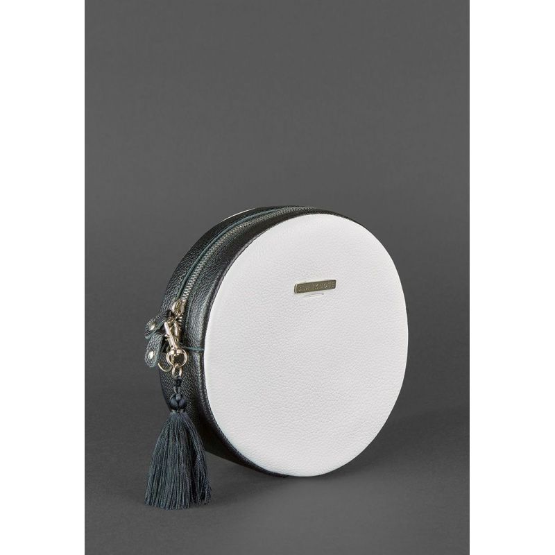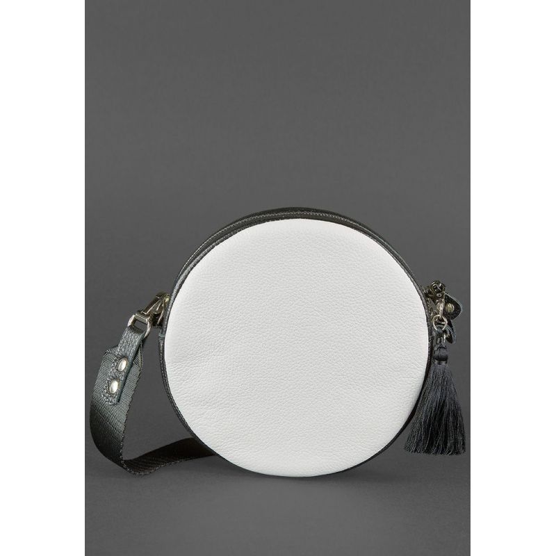 Круглая кожаная женская сумочка Tablet черно-белая