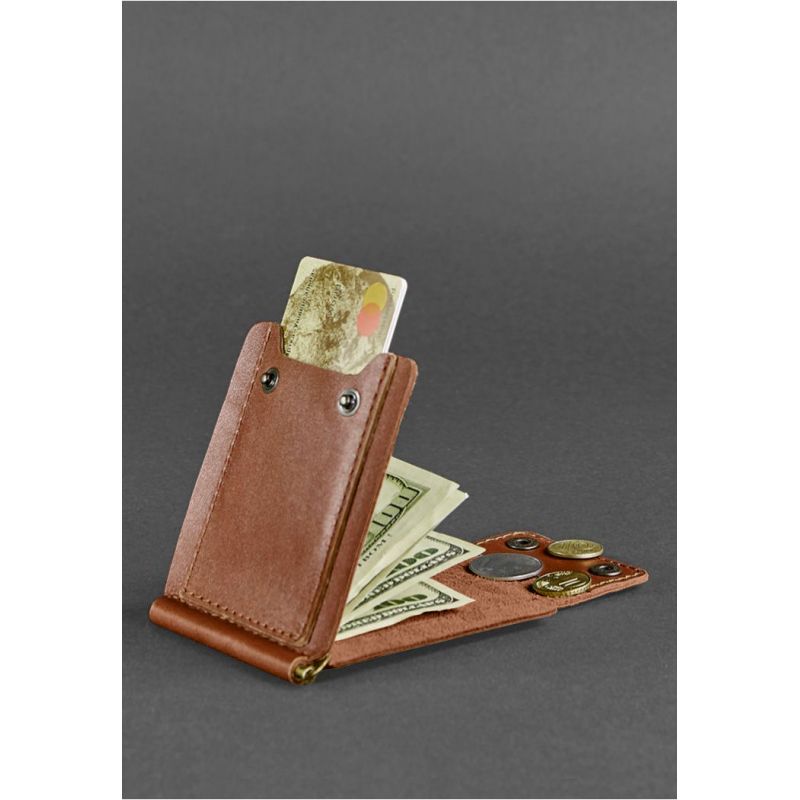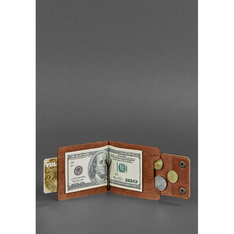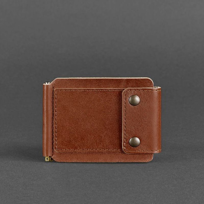 Мужское кожаное портмоне светло-коричневое 10.0 зажим для денег