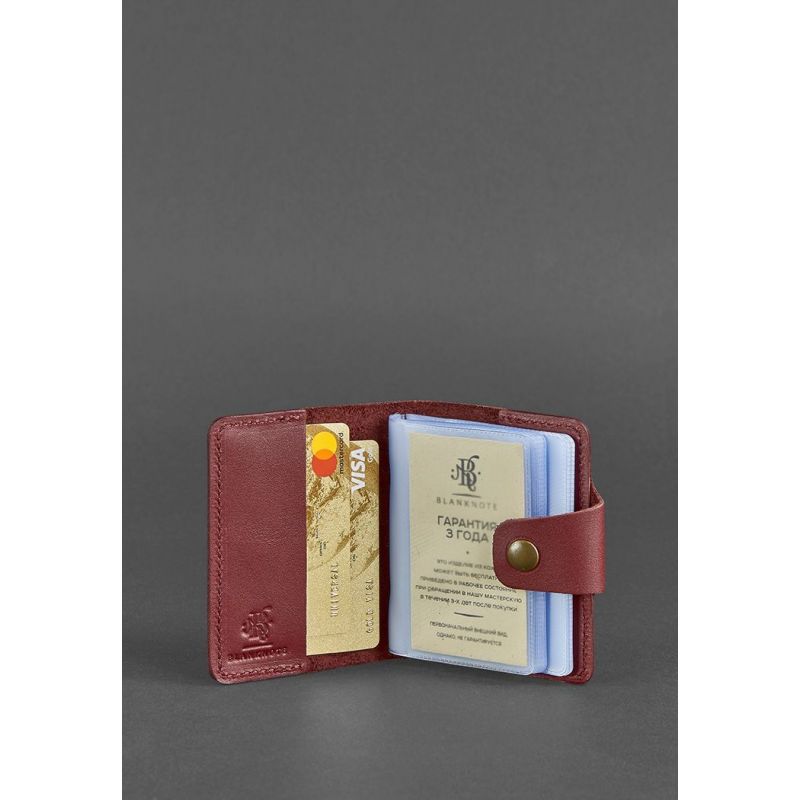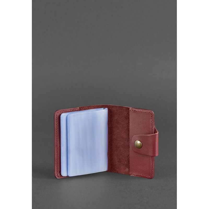 Женский кожаный кард-кейс 7.1 (Книжечка) бордовый