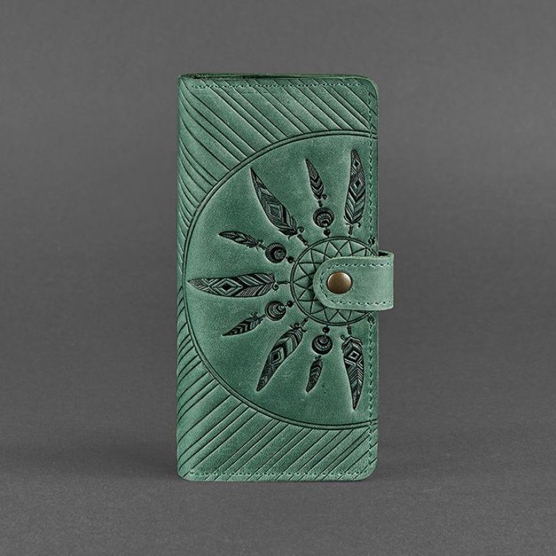 Портмоне «Инди» в изумрудном цвете подкупает оригинальным дизайном, высоким качеством и функциональностью.