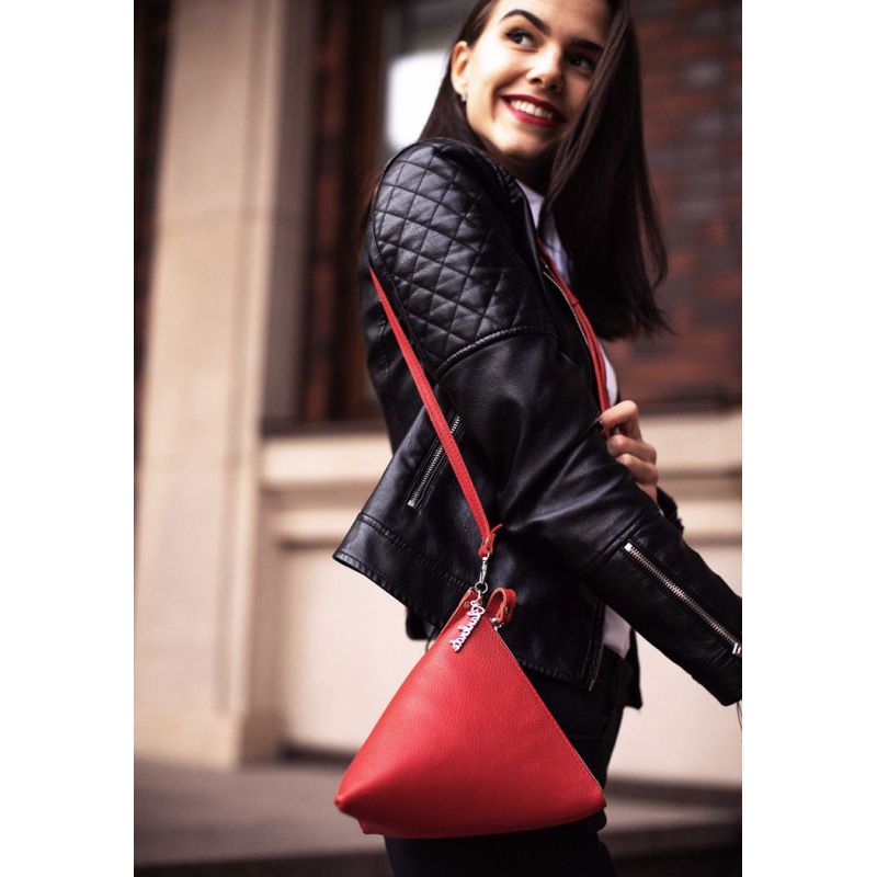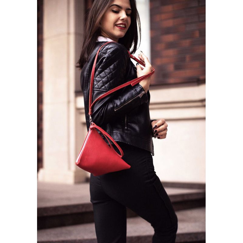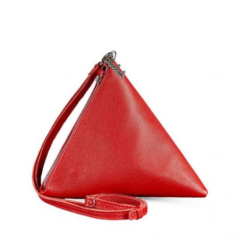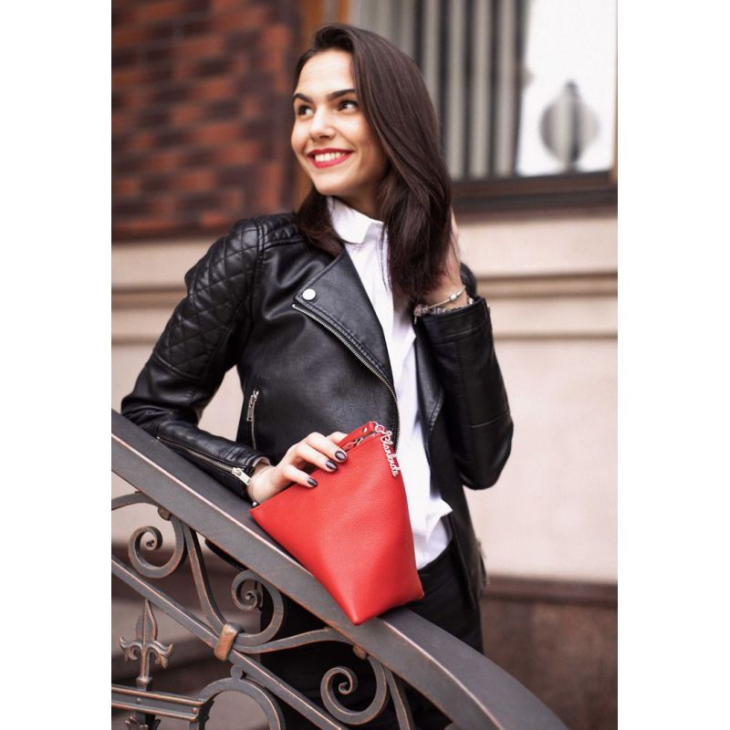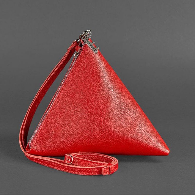 Кожаная женская сумка-косметичка Пирамида красная