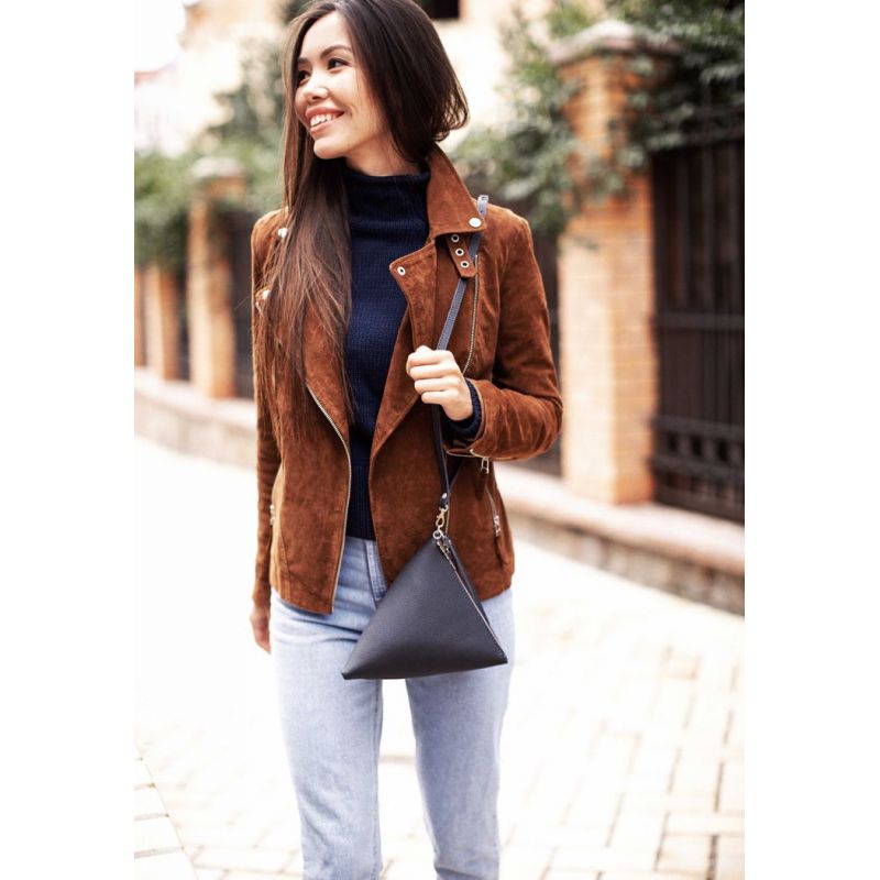 Кожаная сумка оригинальной формы, в виде классической пирамиды, понравиться любительницам смелых и стильных вещей.