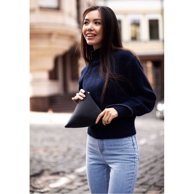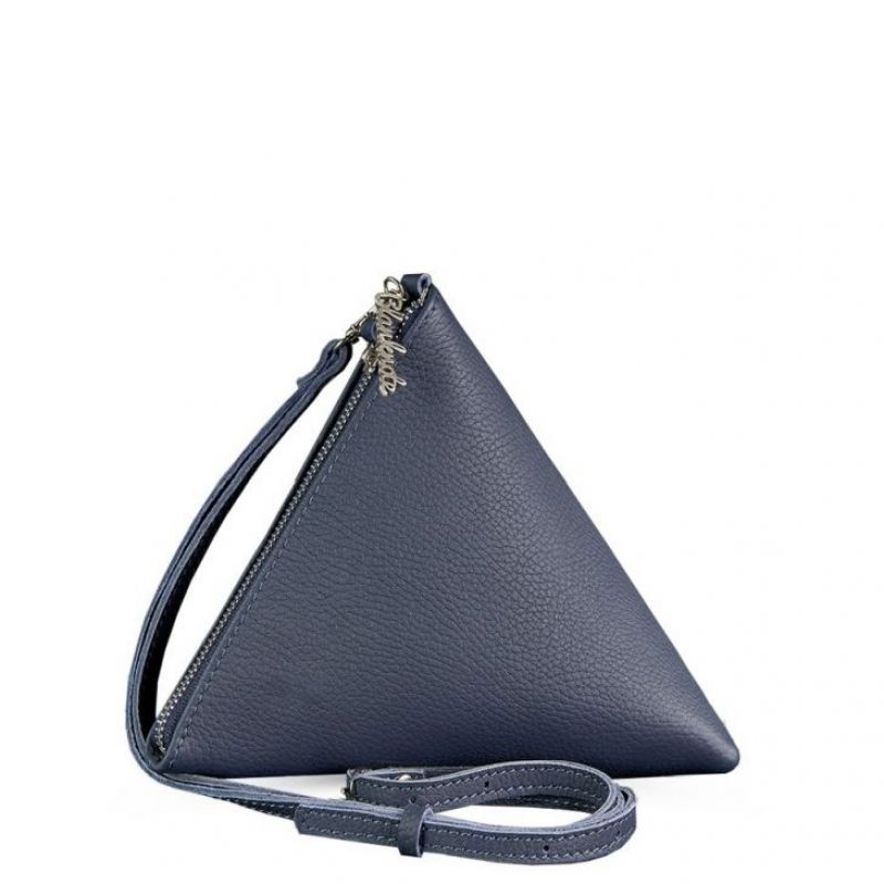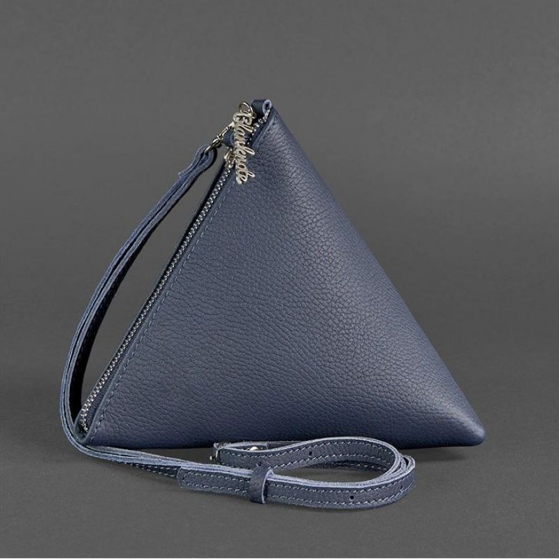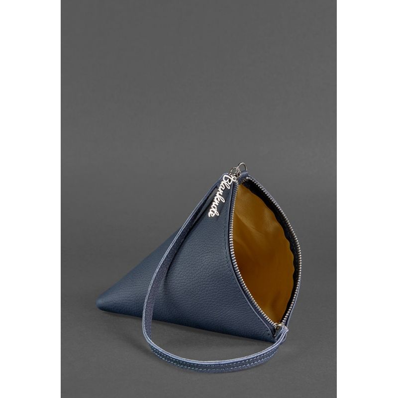 Кожаная женская сумка-косметичка Пирамида синяя
