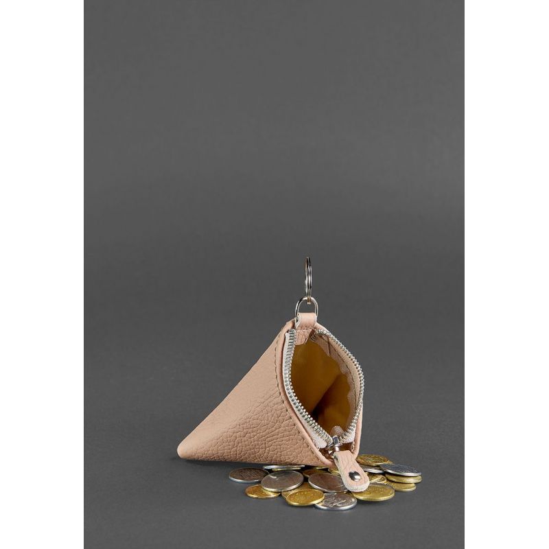 Женская кожаная монетница 2.0 Пирамида светло-бежевая