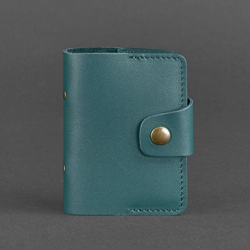 Обложка корд-кейса изготовлена из прочной натуральной кожи краст модного бирюзового цвета. На внутренней стороне обложки имеется пара кармашков.