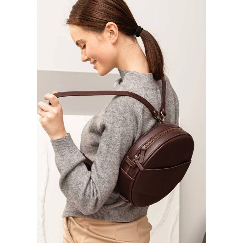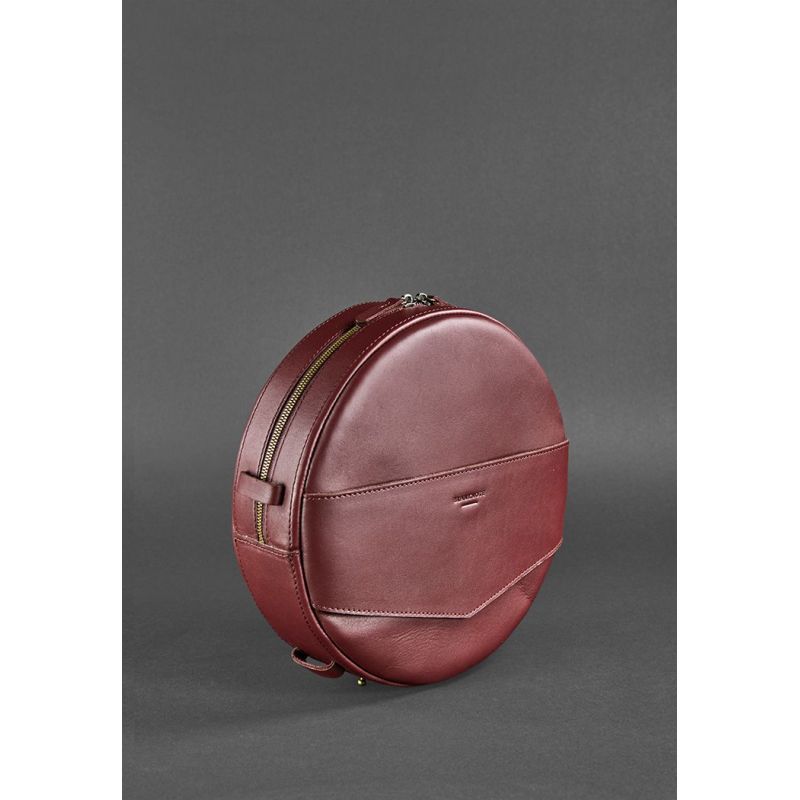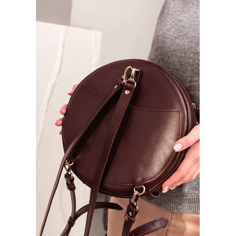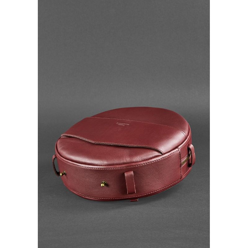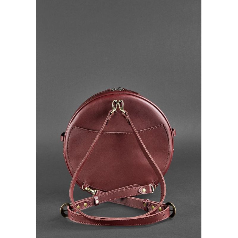 Кожаная женская круглая сумка-рюкзак Maxi бордовая
