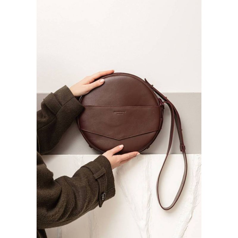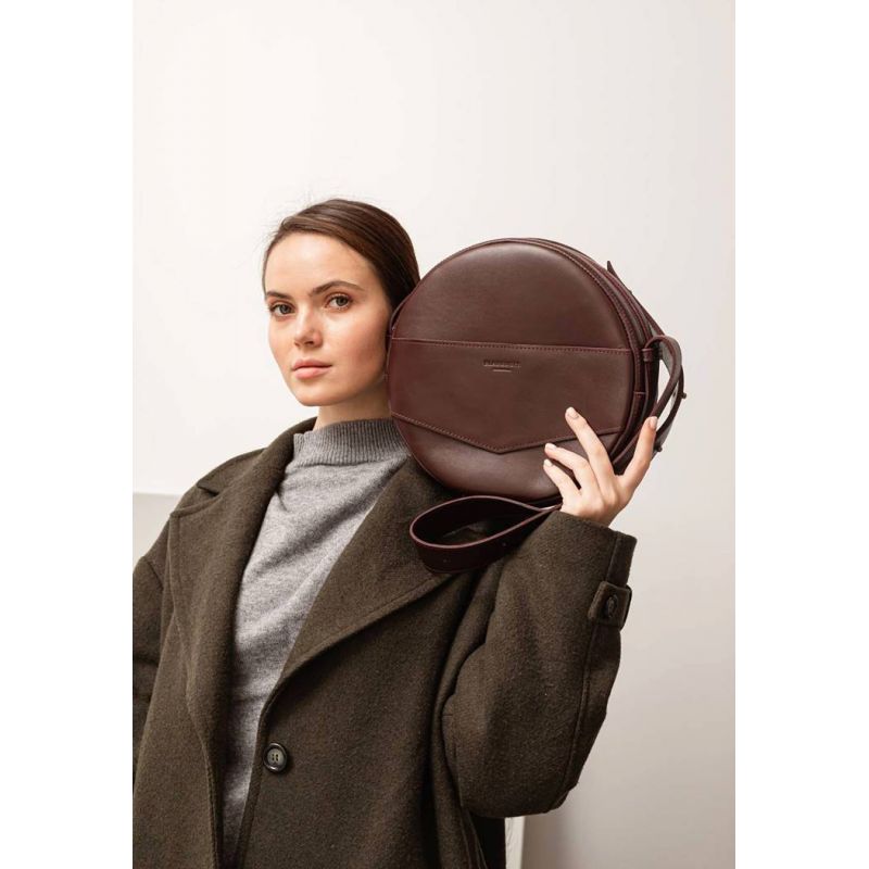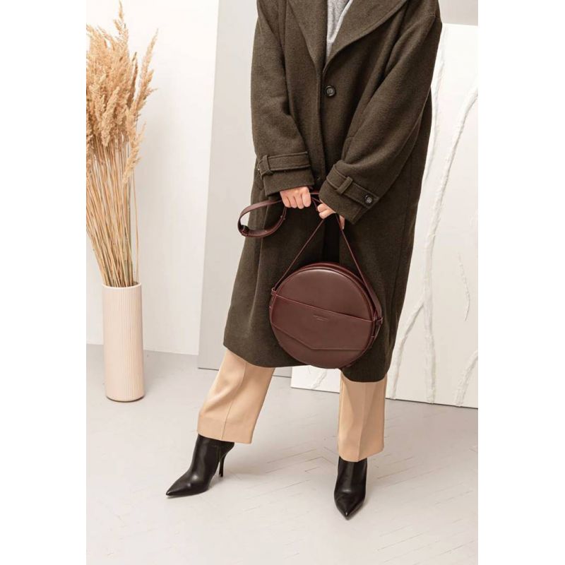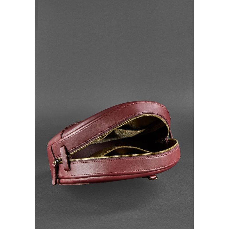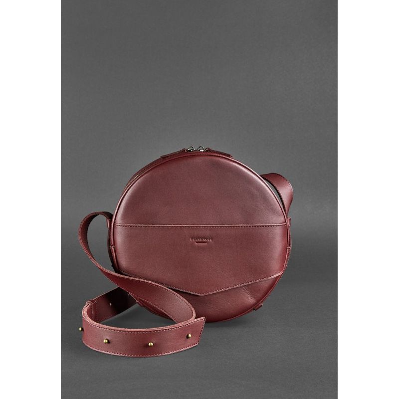 Кожаная женская круглая сумка-рюкзак Maxi бордовая
