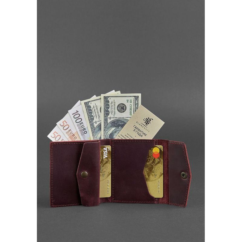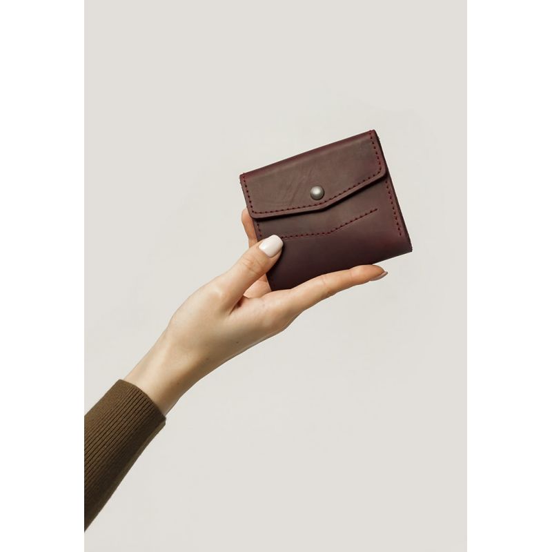 Бордовый кошелек двойного сложения из натуральной кожи Crazy Horse.