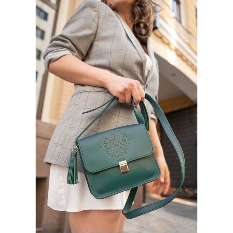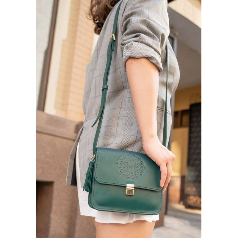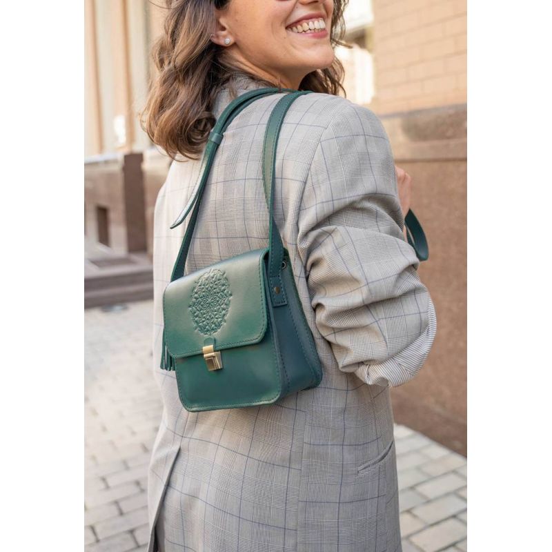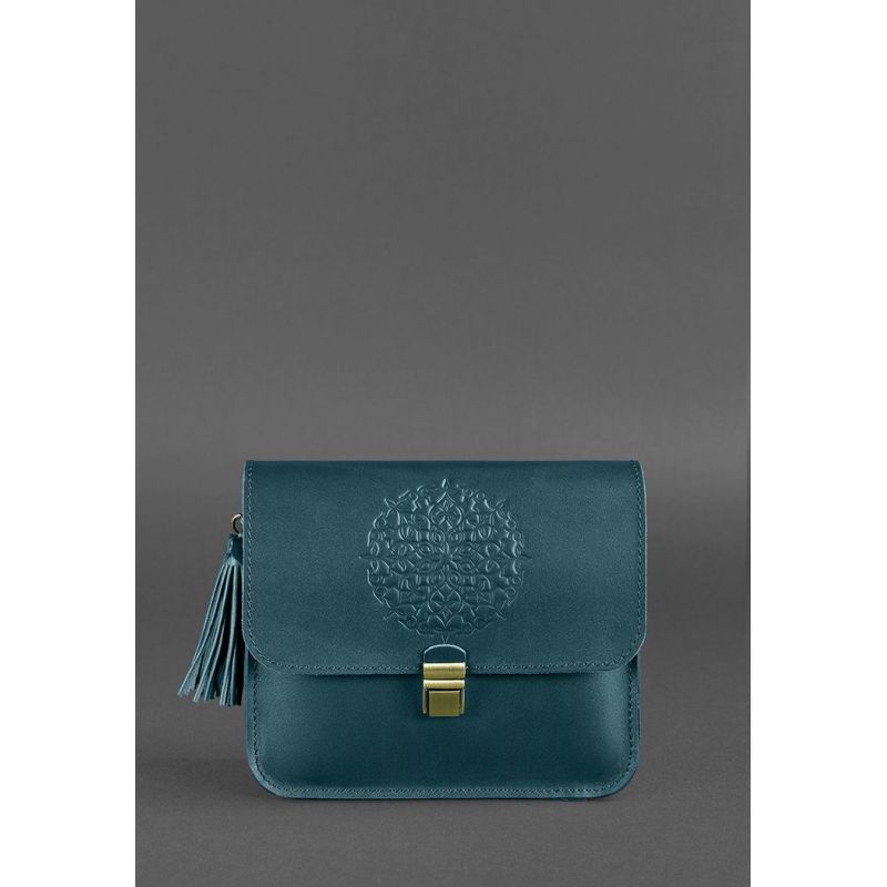 Стильная сумка кросс-боди Лилу для эффектного образа на каждый день. Сумка изготовлена из качественной натуральной кожи. Её оригинальный, и в то же время классический, дизайн никого не оставит равнодушным! Тиснение в виде индийском мандалы, которое украшает клапан сумки, добавит гармонии и умиротворения образу. А глубокий темно-бирюзовый цвет усилит этот эффект. Сумка имеет два просторных отделения. Также внутри есть несколько маленьких карманов для карточек и визиток. Носить сумку можно на плече или через плечо. Длина кожаного ремня легко регулируется. Закрывается сумка на стильный портфельный замочек. Упакован аксессуар в крафтовую коробку. В подарок к сумке Вы получаете: Съемную кисточку, которая служит милым украшением и может использоваться как брелок.  Холдер для наушников и проводов. Забудьте о спутанных проводах Тетрадку с повторением мотива «мандала». Гарантия на сумку - 3 года с момента покупки. Фурнитура и комплектация может быть изменена производителем