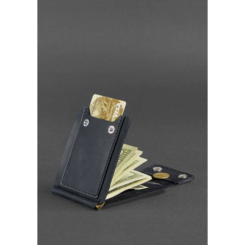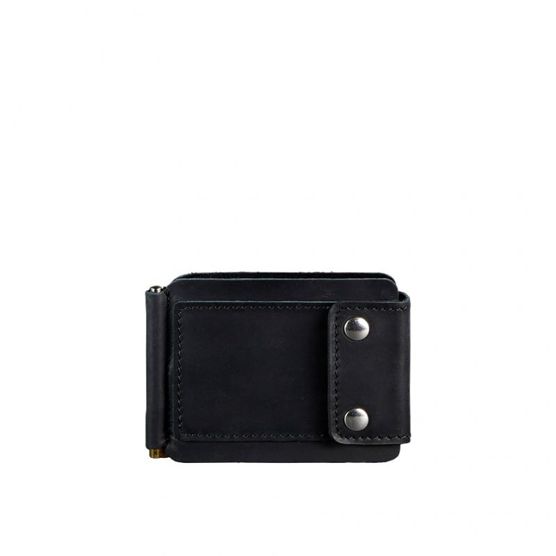 Мужское кожаное портмоне черное 10.0 зажим для денег Crazy Horse