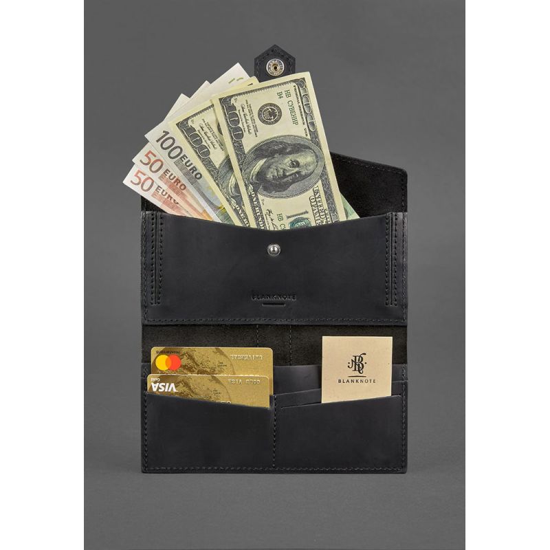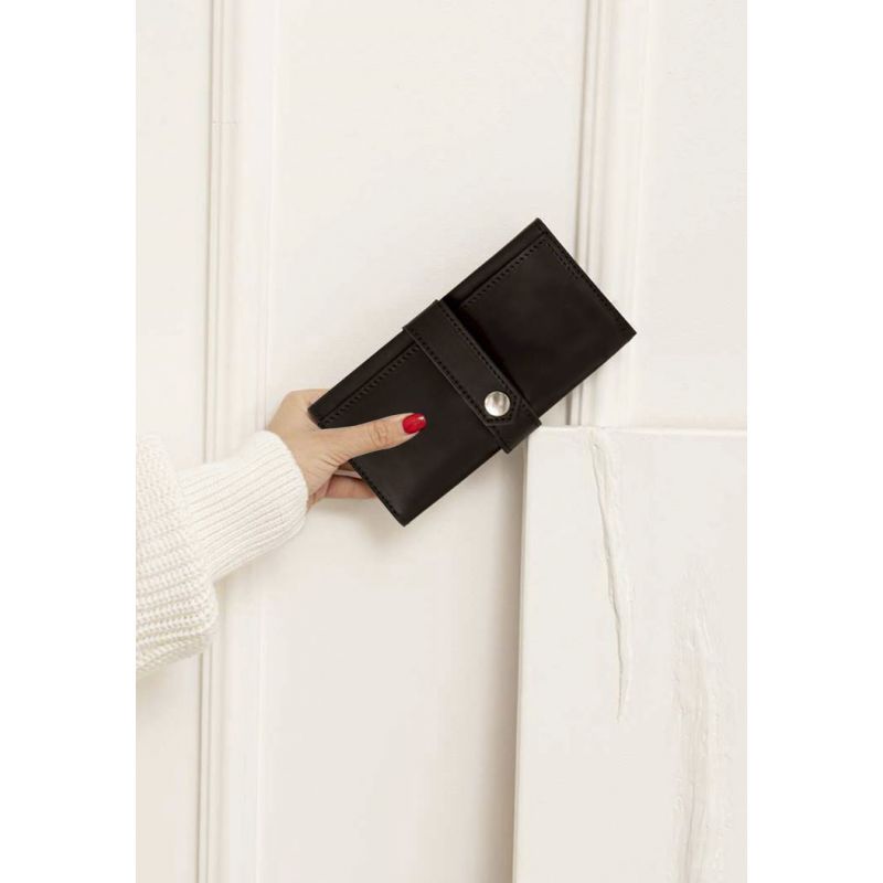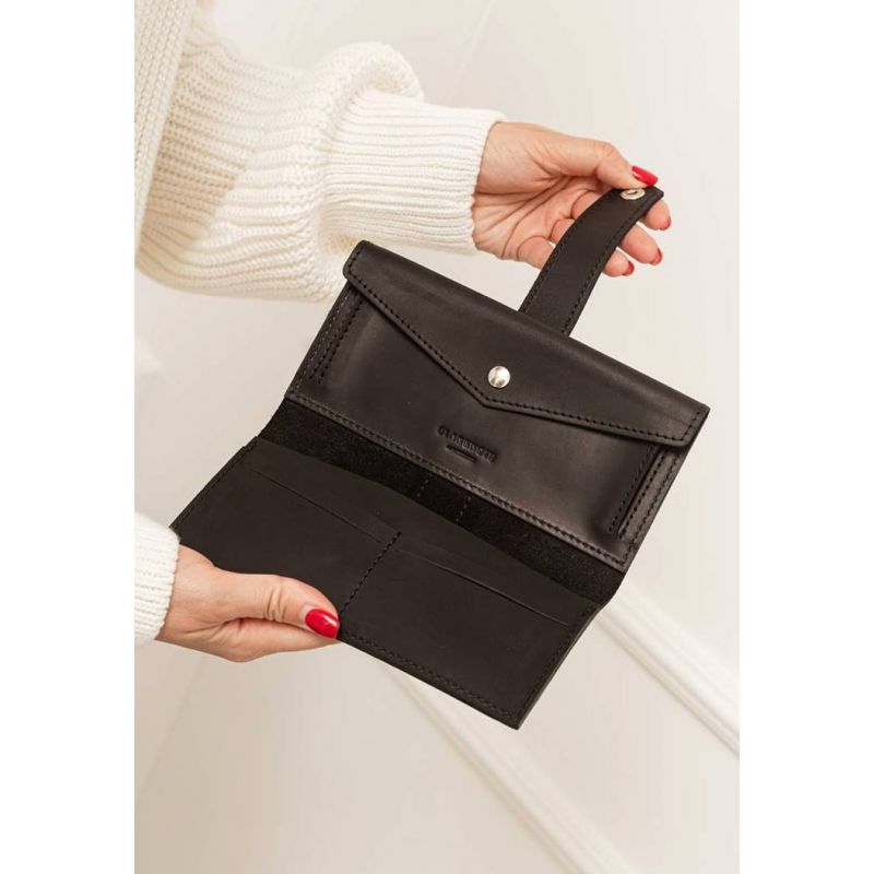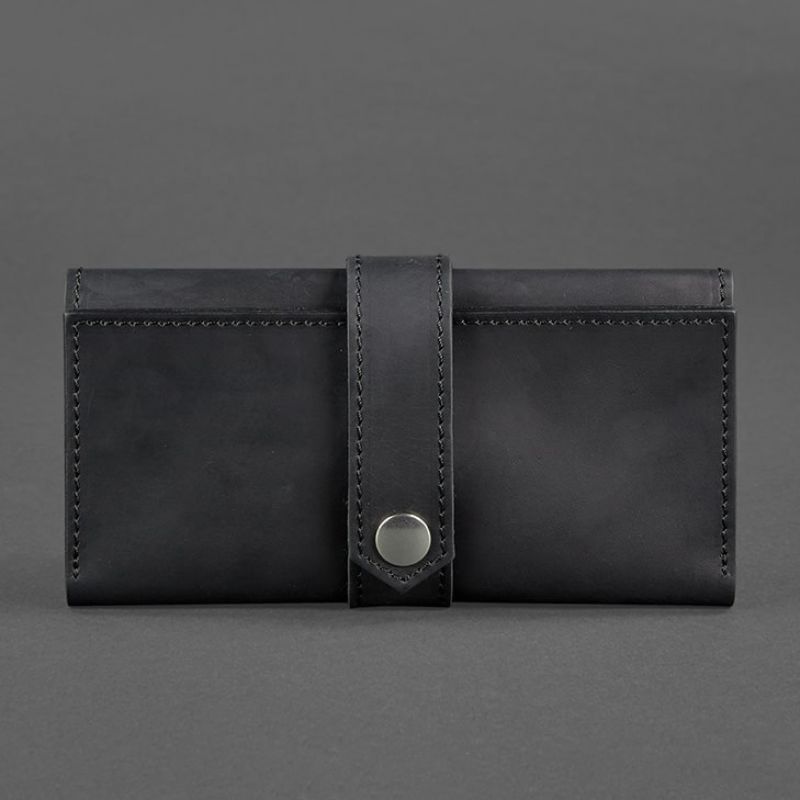 Стильное портмоне в черном цвете, которое можно использовать в качестве клатча. Изготовлено из натуральной кожи Crazy Horse. Она имеет очень приятную матовую поверхность и умент красиво стариться: со временем изделие приобретает очень винтажный вид.