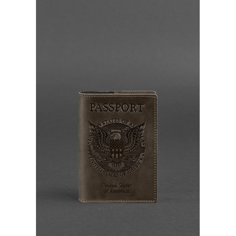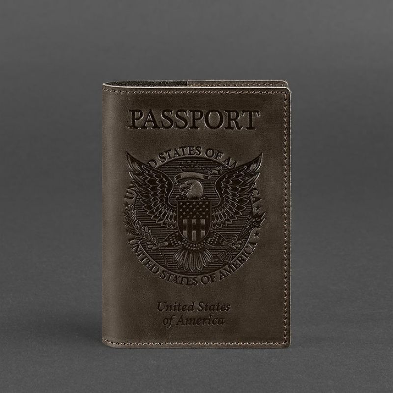 Кожаная обложка для паспорта с американским гербом темно-коричневая
