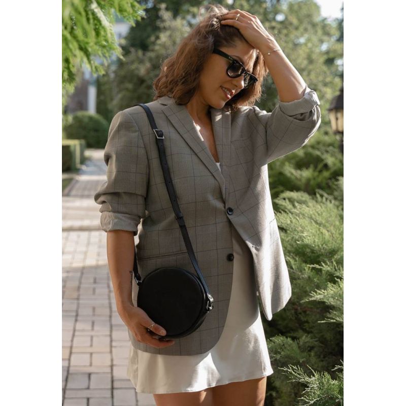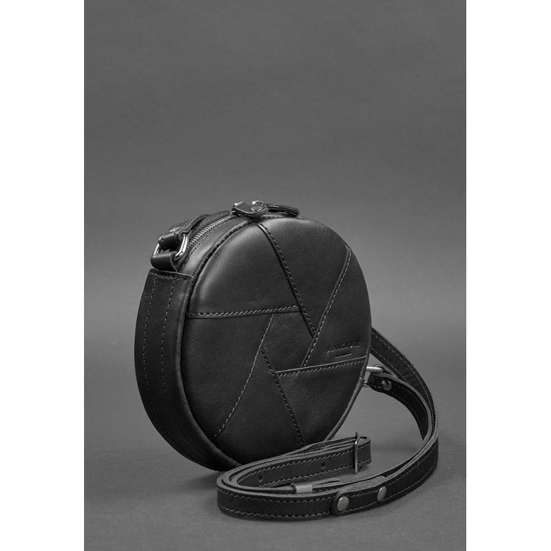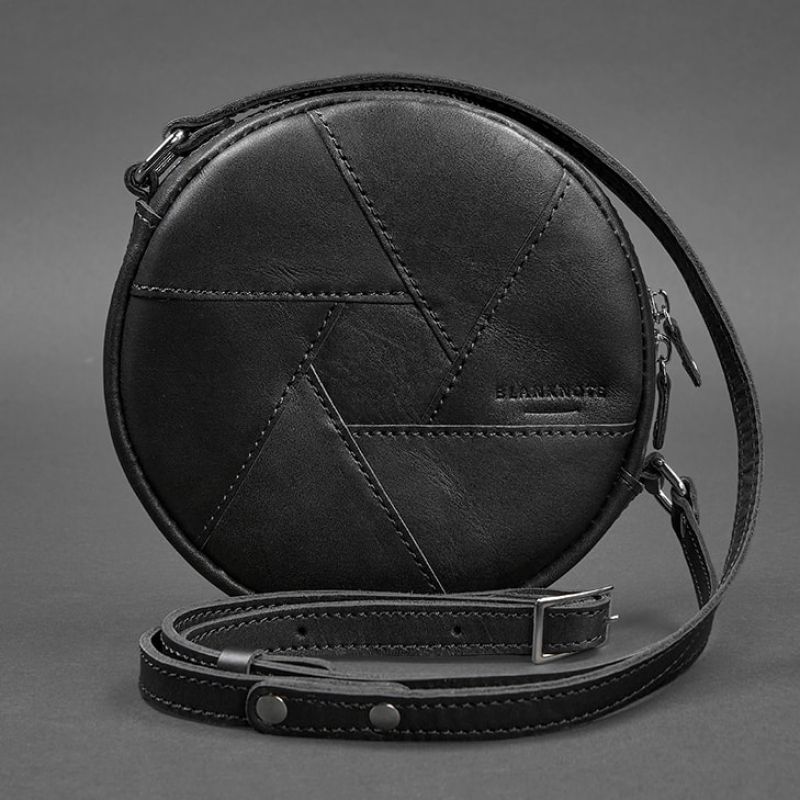 Небольшая черная сумочка круглой формы из натуральной кожи станет отличной спутницей современной девушки. Такой аксессуар будет уместен и с деловым костюмом, и с вечерним платьем. Сумка отлично будет смотреться, как в тандеме с шифоном или атласом, так и в сочетании с повседневным денимом.