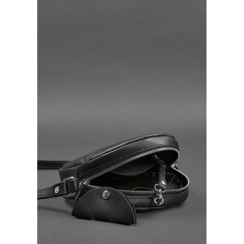 Кожаная круглая женская сумка Бон-Бон Krast черная