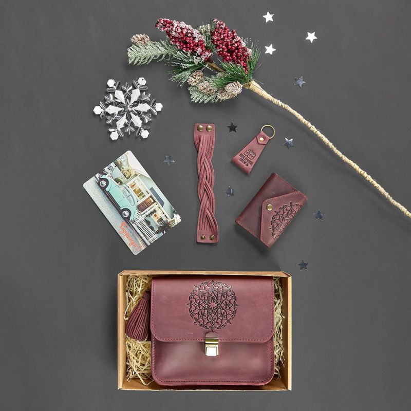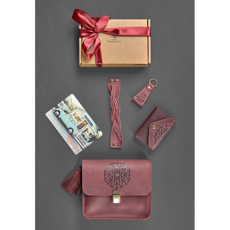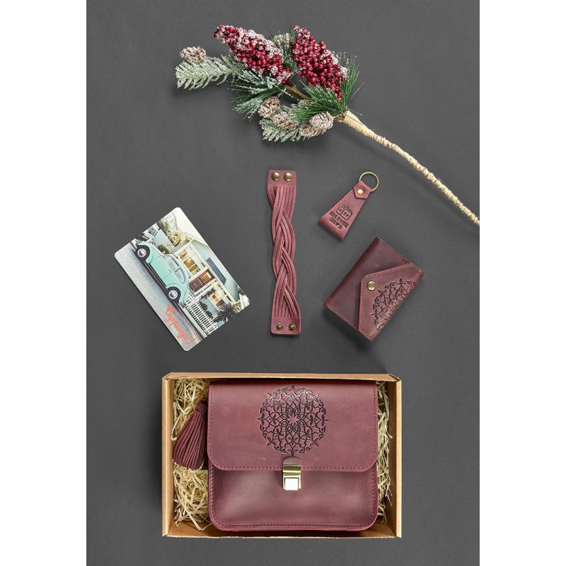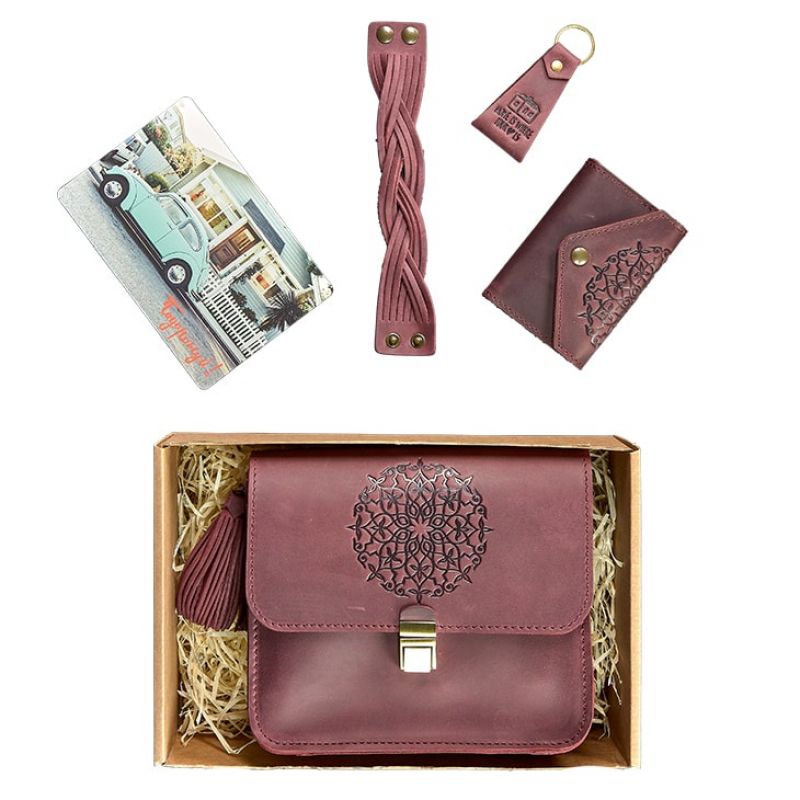Женский подарочный набор кожаных аксессуаров Бордо crazy horse