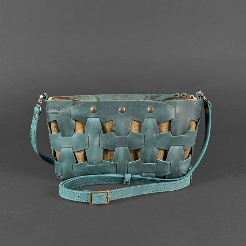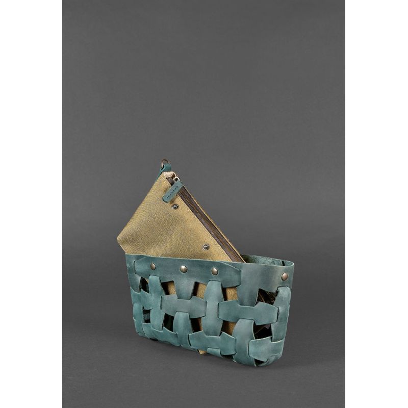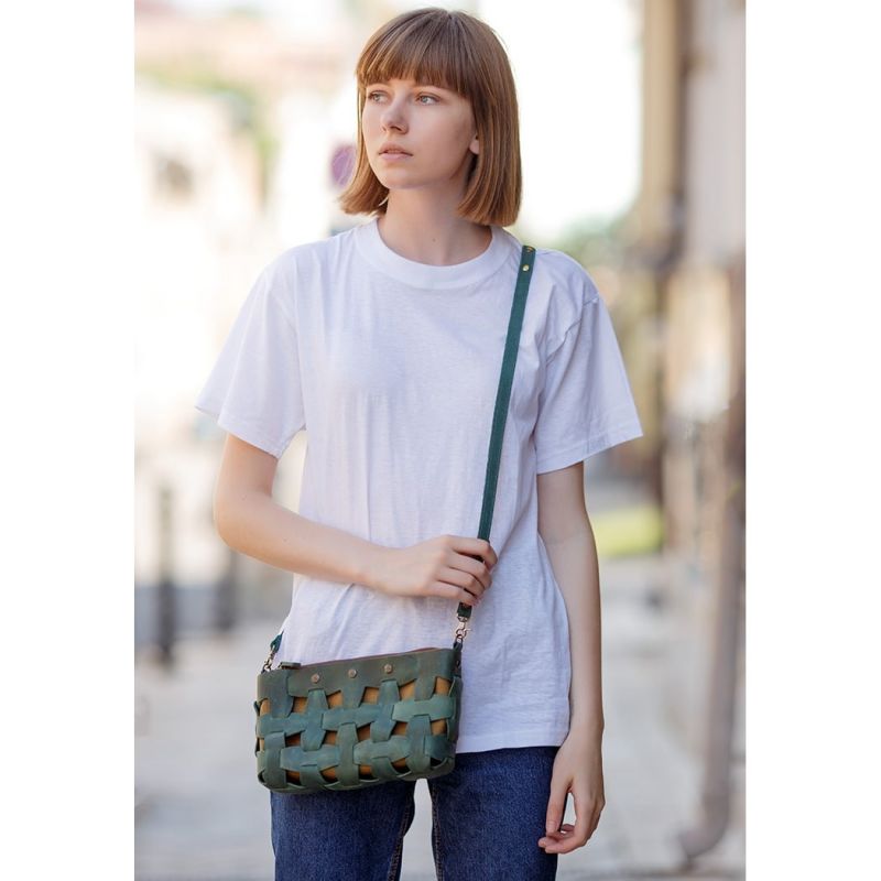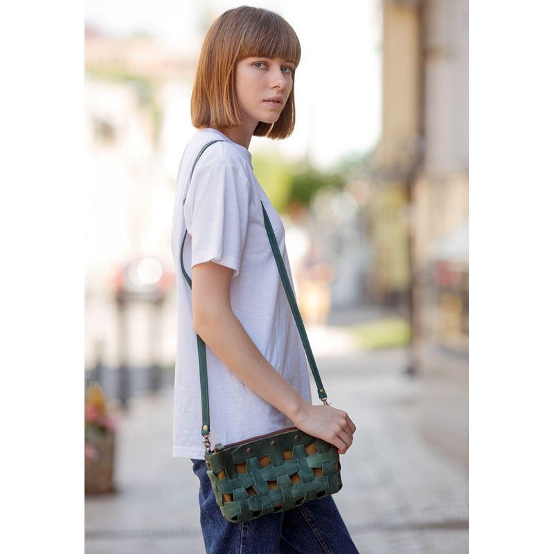 Кожаная плетеная женская сумка Пазл S зеленая Crazy Horse