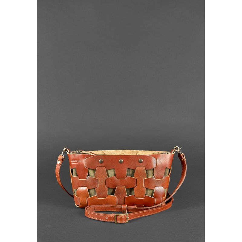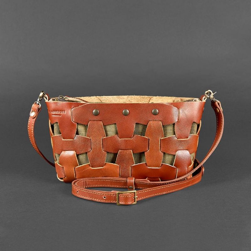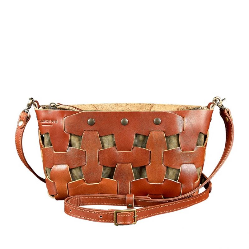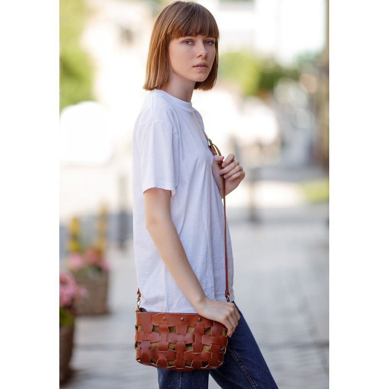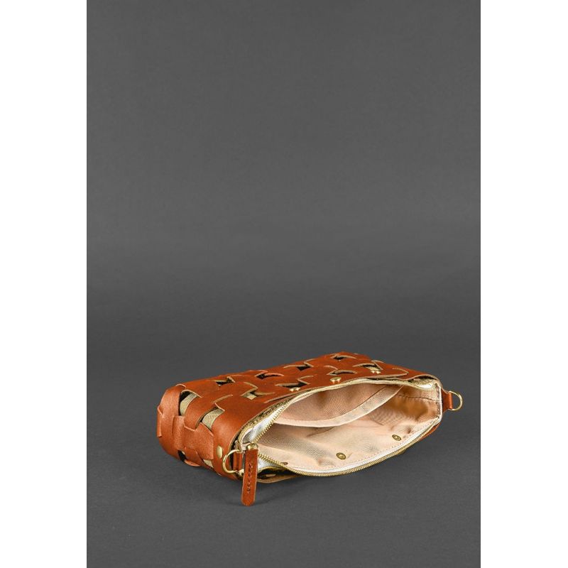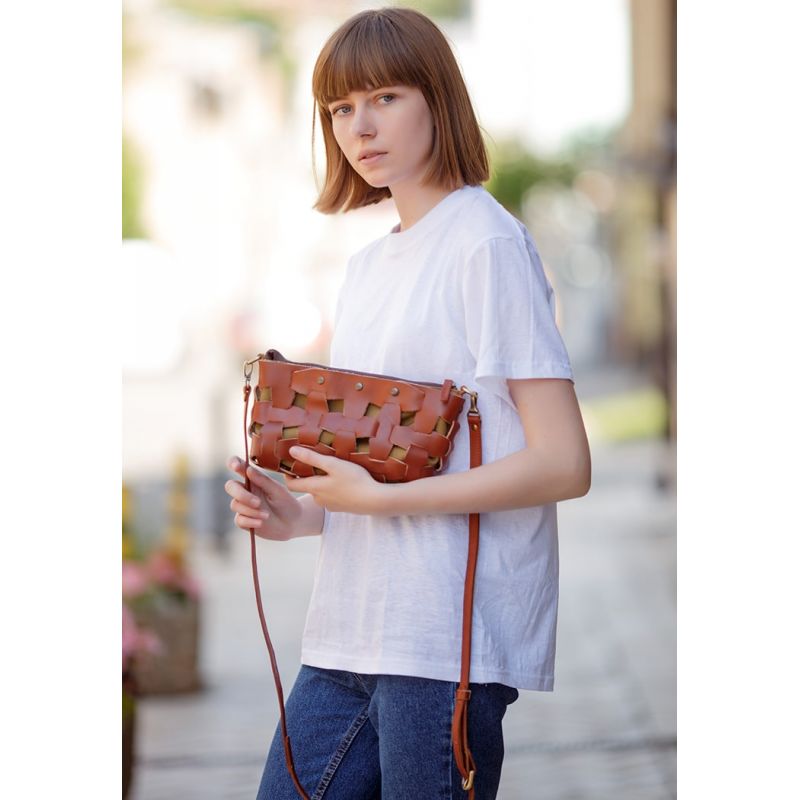 Кожаная плетеная женская сумка Пазл S светло-коричневая краст